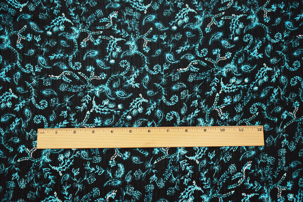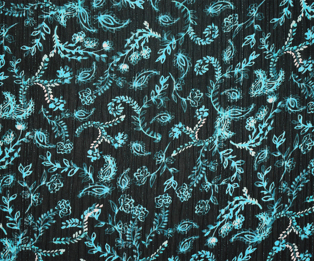 -100% polyester yoryu chiffon fabric hints of metallic stripes printed with a floral and vine pattern