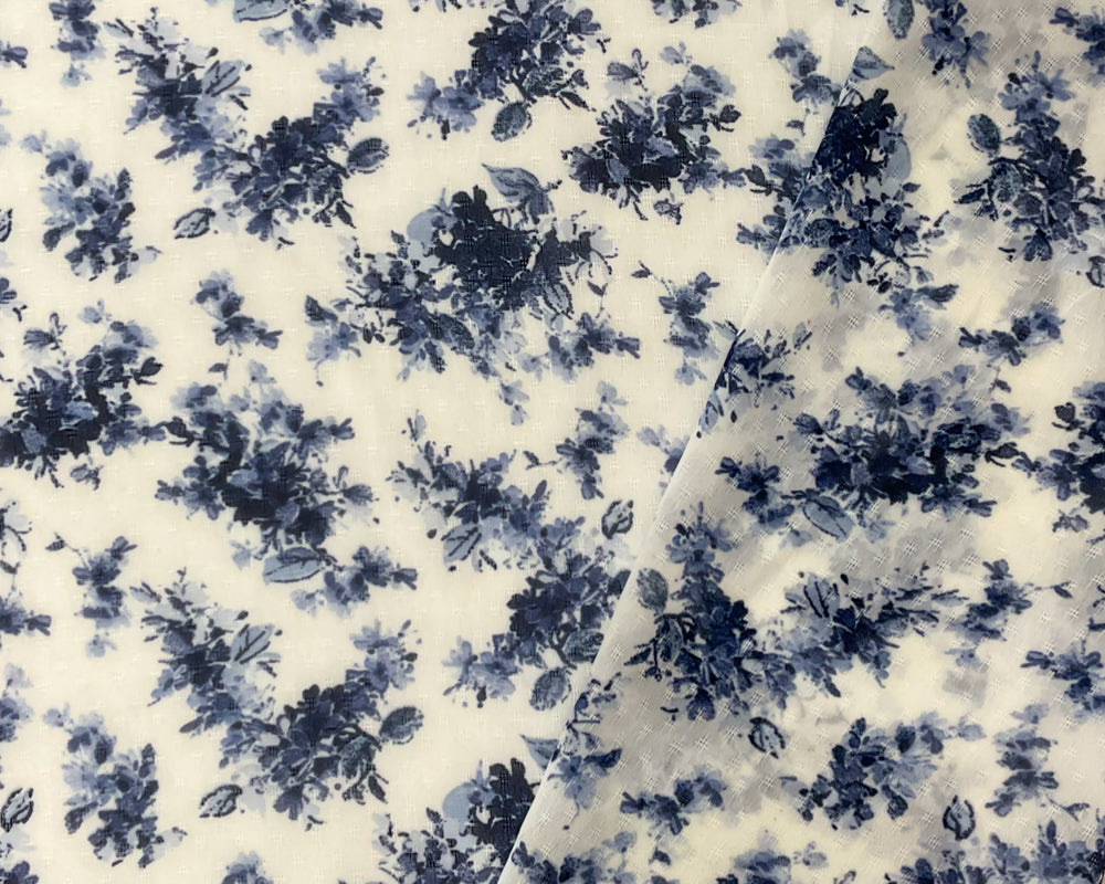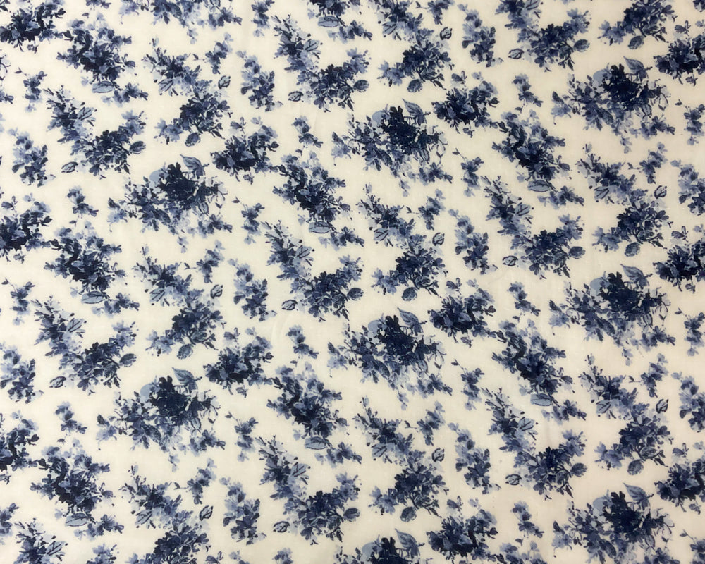 Off-White-Blue Poly Floral Printed Dobby Chiffon Woven Fabric