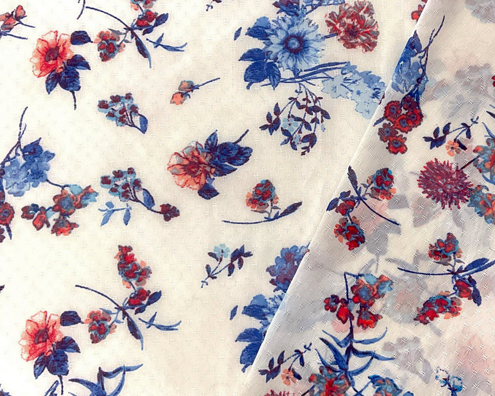 -Off-White-Blue-Multi Poly Floral Printed Ogee Pattern Dobby Chiffon Woven Fabric