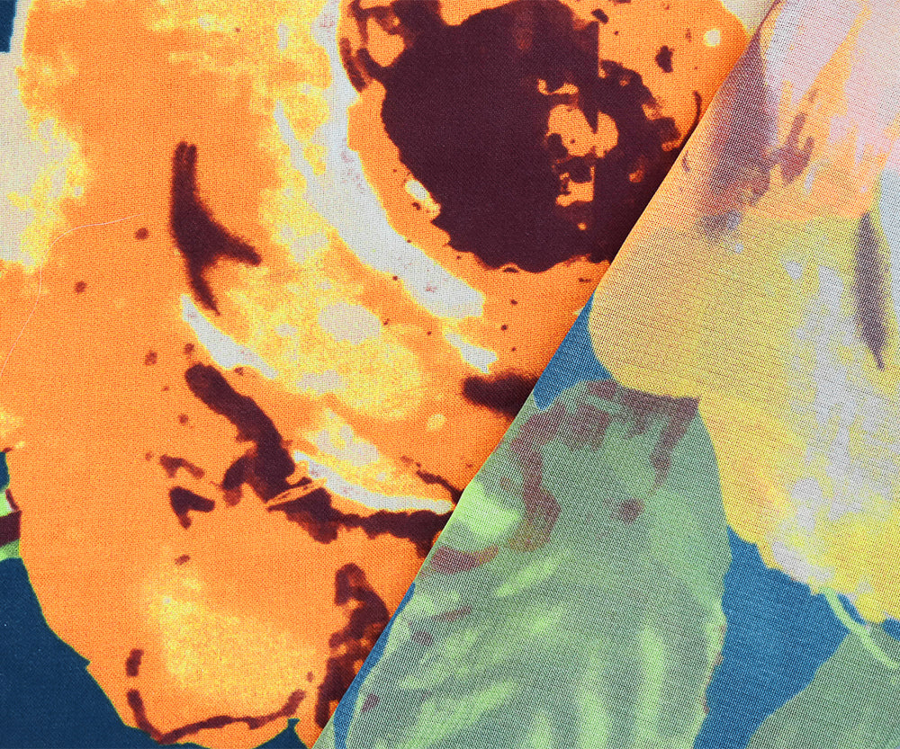 -100% polyester chiffon woven fabric printed with a large scale floral pattern with dots