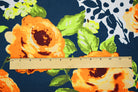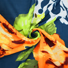 Orange-Blue-Multi Floral Dots Printed Poly Chiffon Woven Fabric
