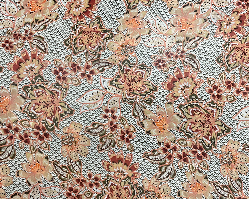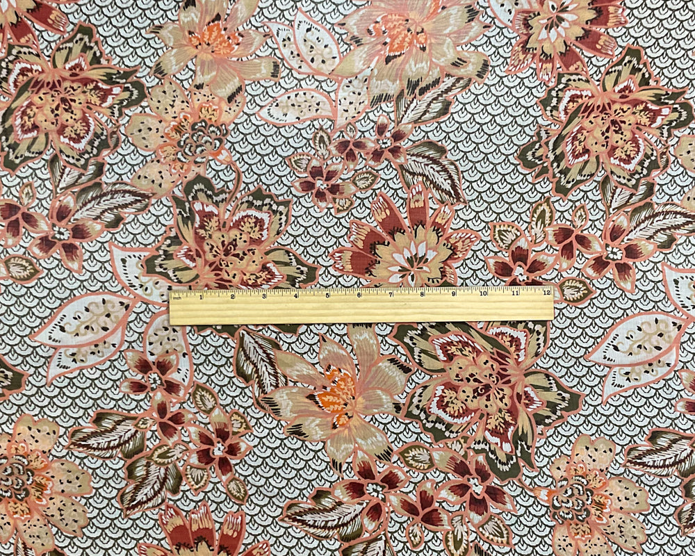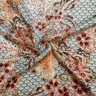 Orange-Green-Multi Poly Floral Printed Crinkle Yoryu Chiffon Woven Fabric