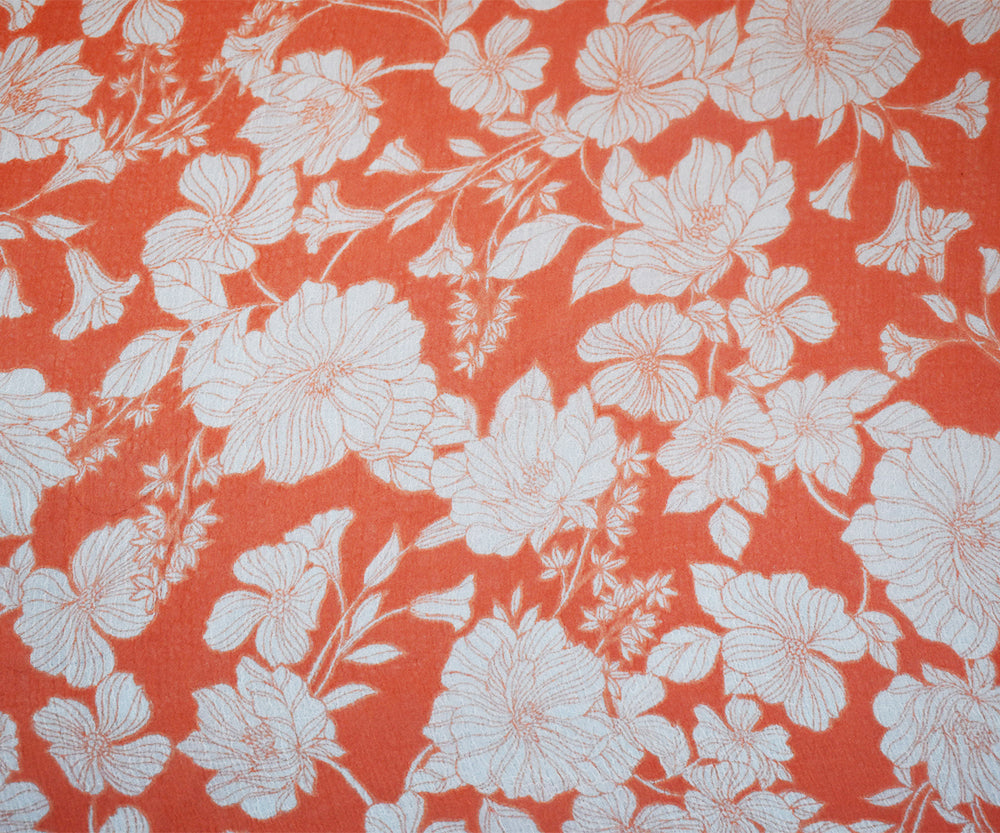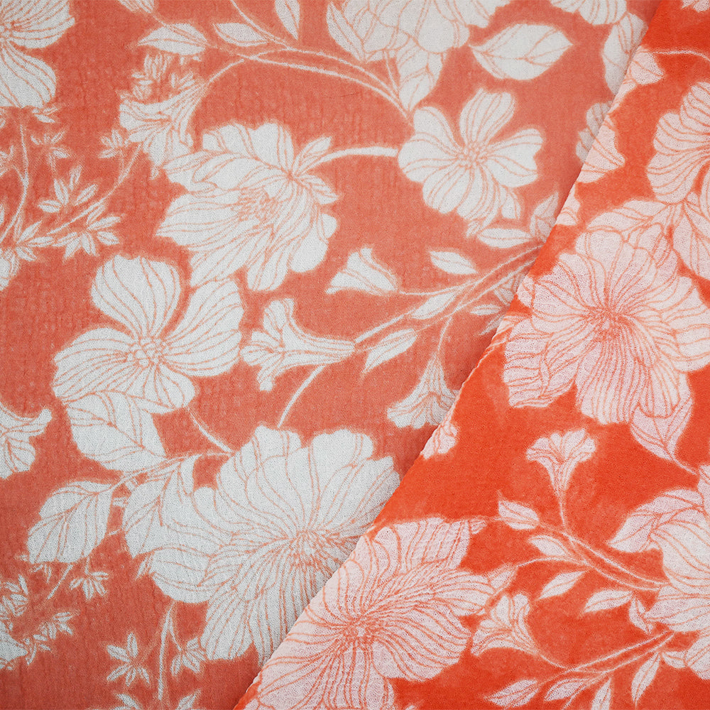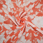 Orange-Ivory Floral Printed Poly Yoryu Chiffon Woven Fabric