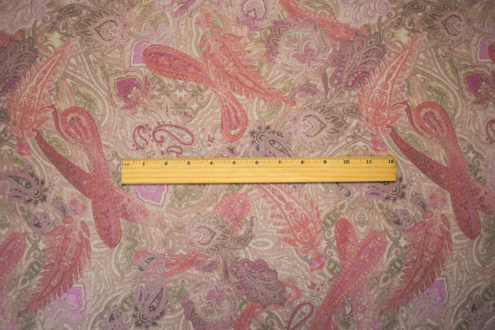 Pink-Beige-Multi Poly Paisley Printed Crinkle Yoryu Chiffon Woven Fabric