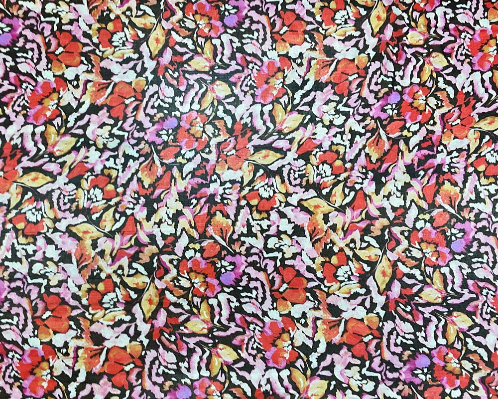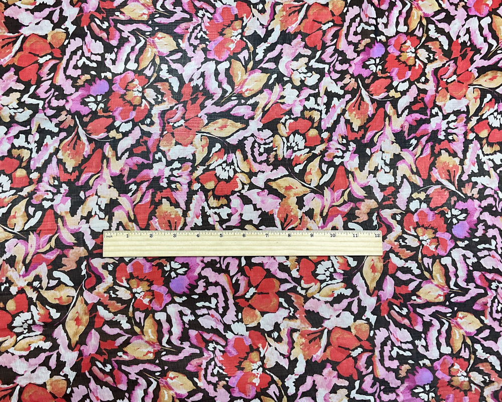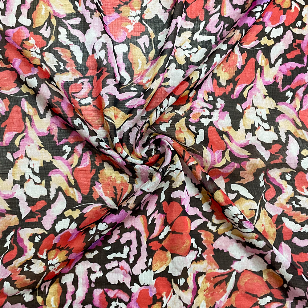 -Pink-Black-Multi Poly Floral Printed Crinkle Yoryu Chiffon Woven Fabric