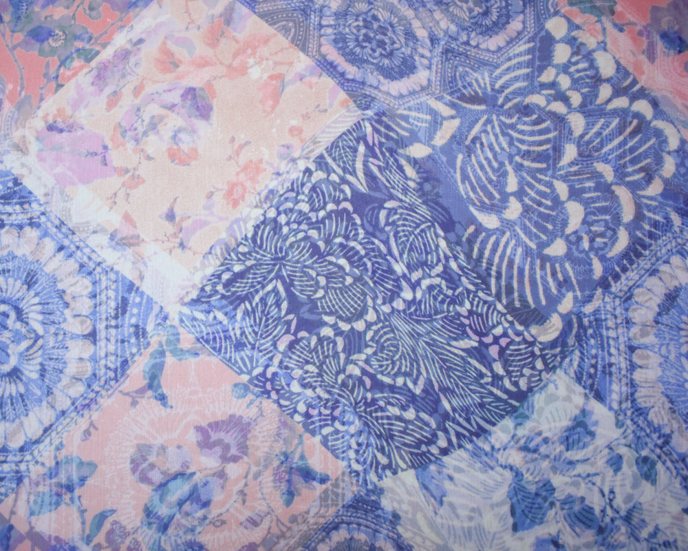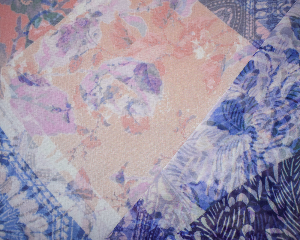 Pink-Blue-Multi Poly Ink Floral Printed Crinkle Yoryu Chiffon Woven Fabric