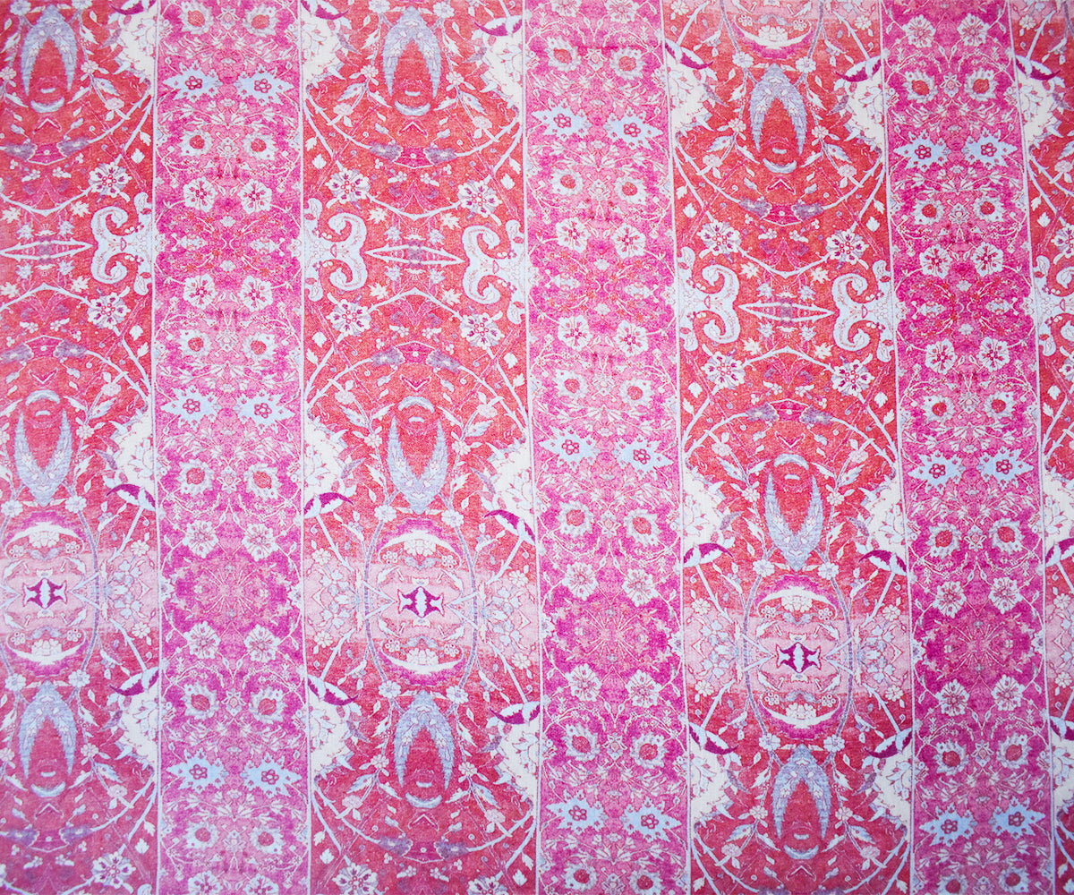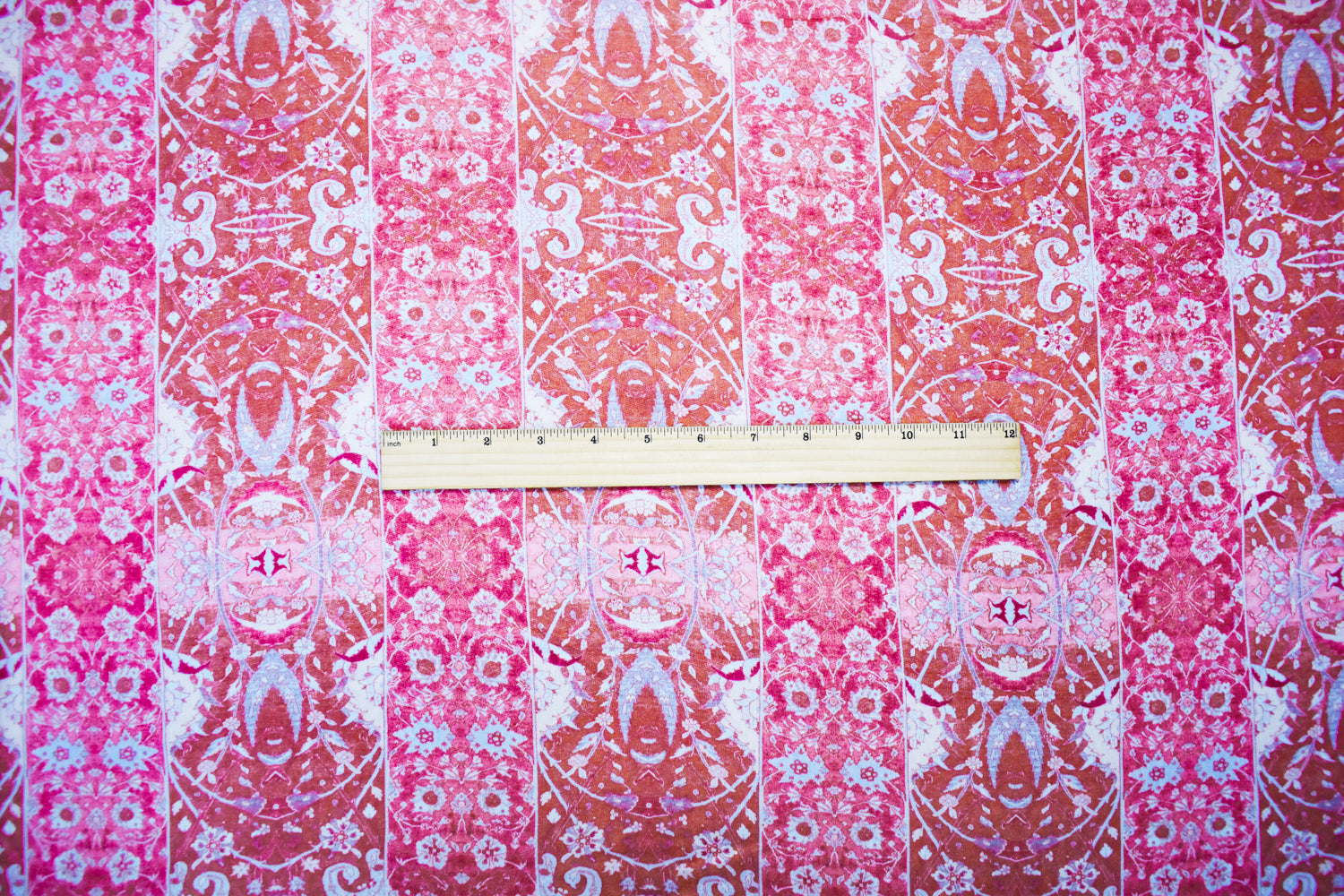 -Pink-Blue-Multi Poly Stripe Floral Printed Crinkle Yoryu Chiffon Woven Fabric