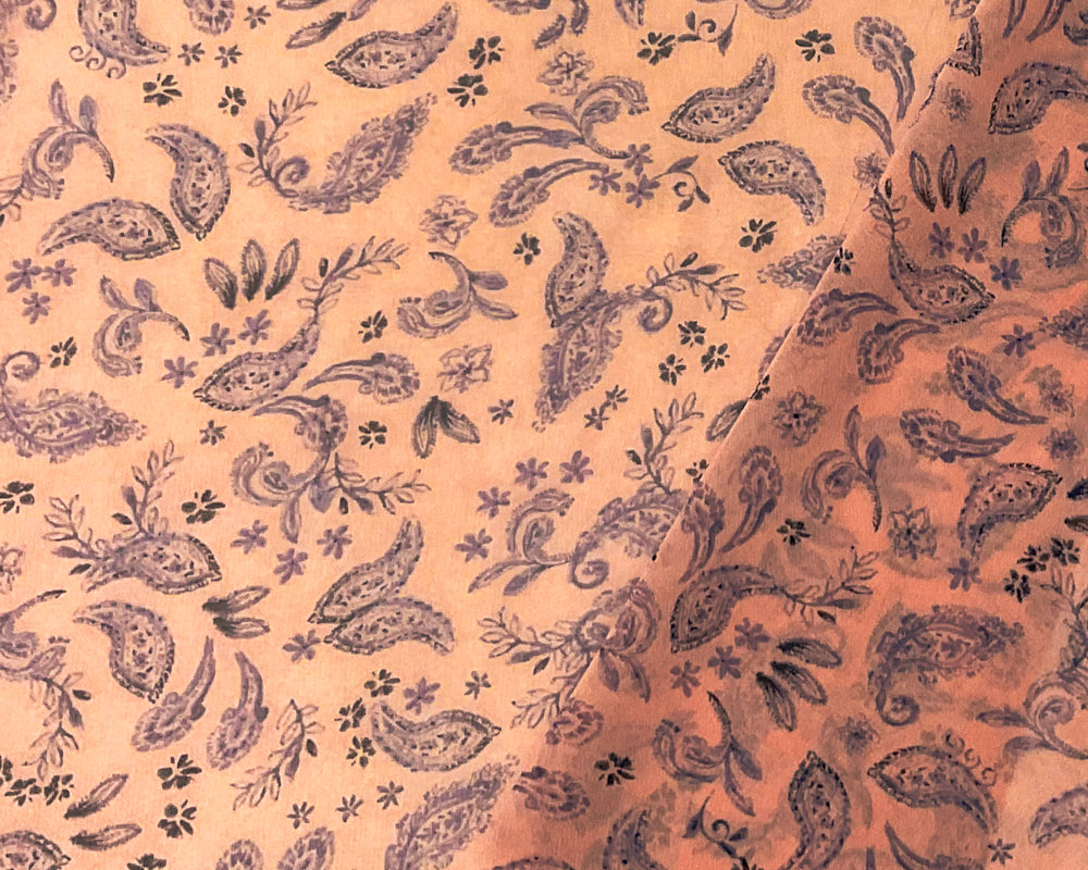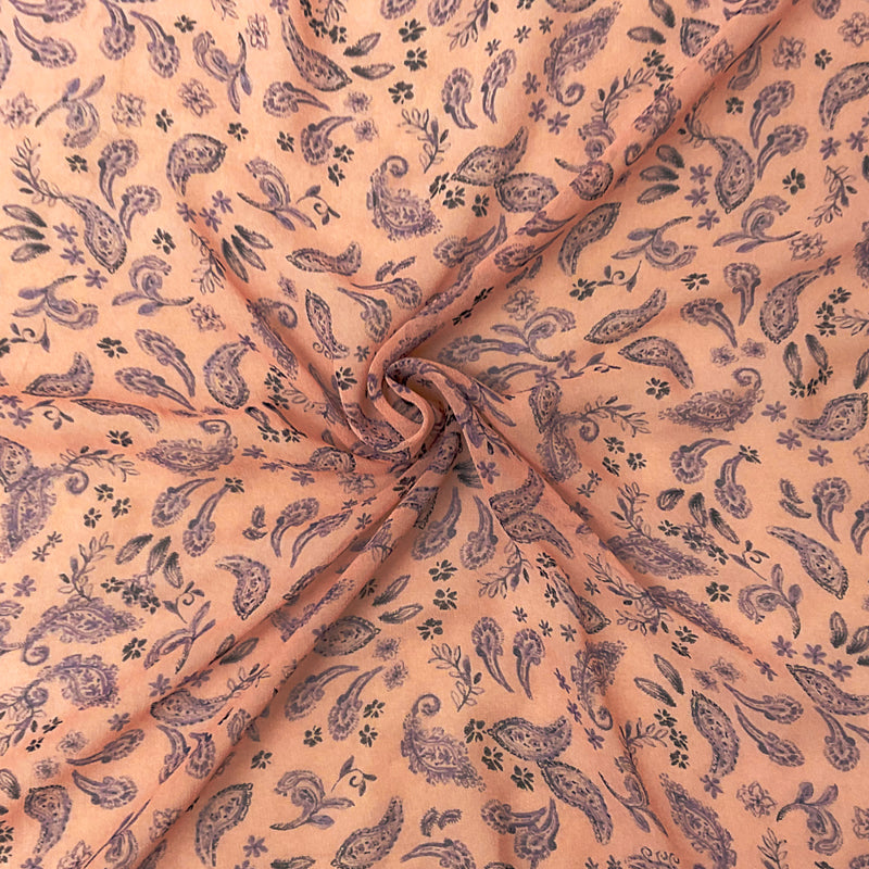 -Pink-Purple-Multi Poly Paisley Printed Silky Pebble Chiffon Woven Fabric