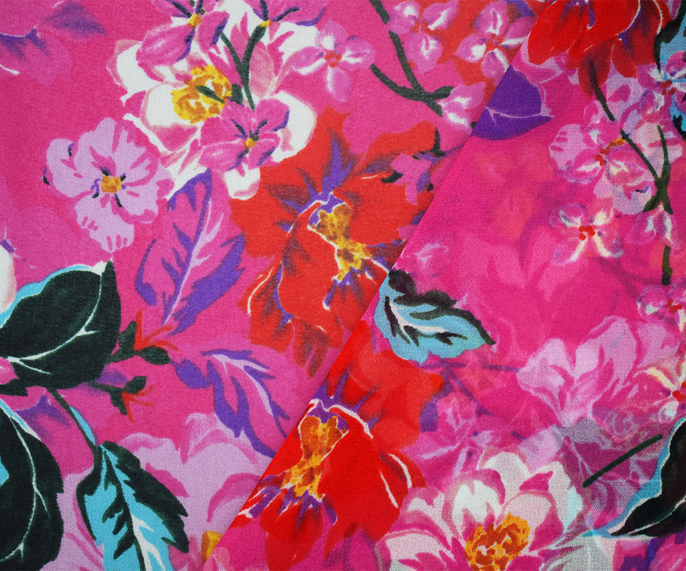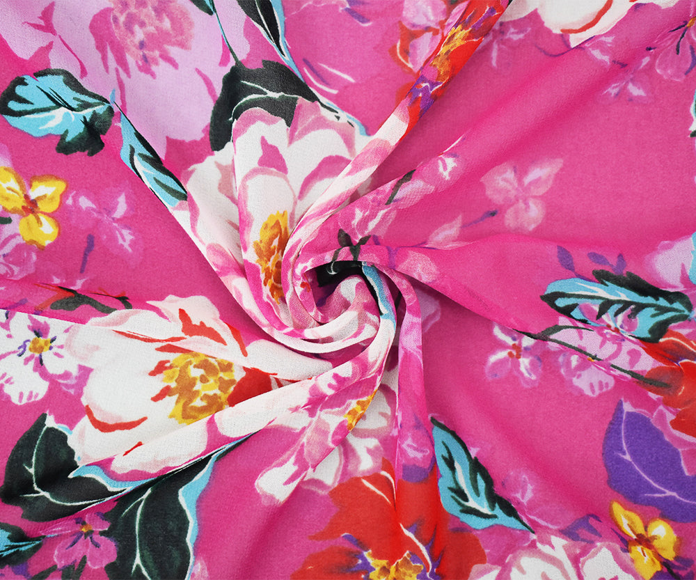 -100% polyester pebble chiffon fabric printed with a floral pattern