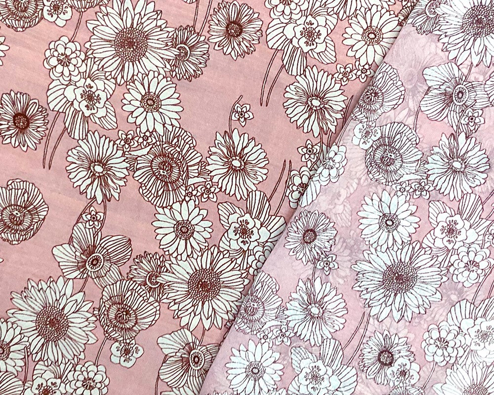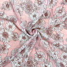 Pink-White-Brown Poly Floral Printed Chiffon Woven Fabric