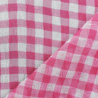 Pink-White Check Poly Crinkle Chiffon Woven Fabric
