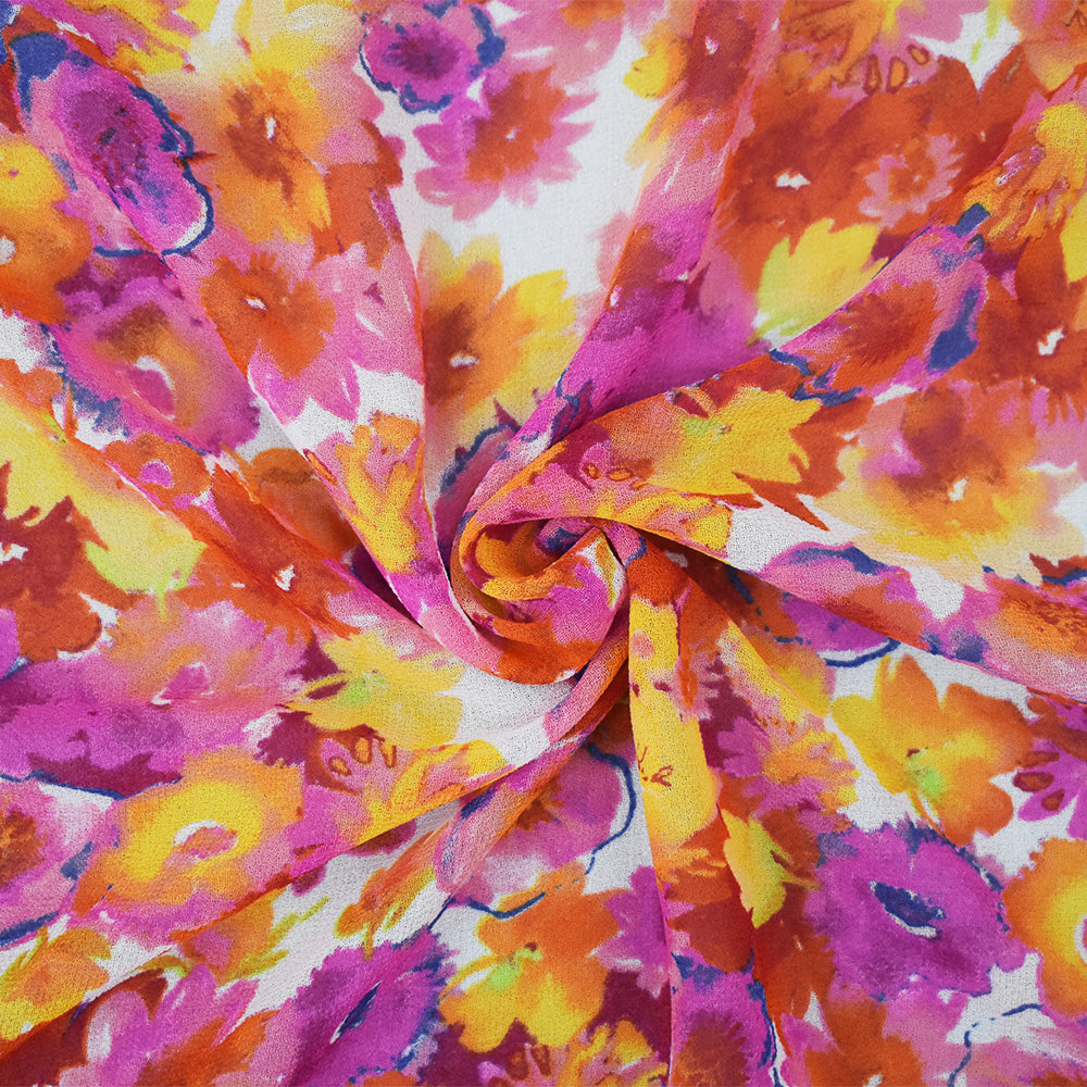 Pink-Yellow-Multi Floral Printed Poly Chiffon Woven Fabric