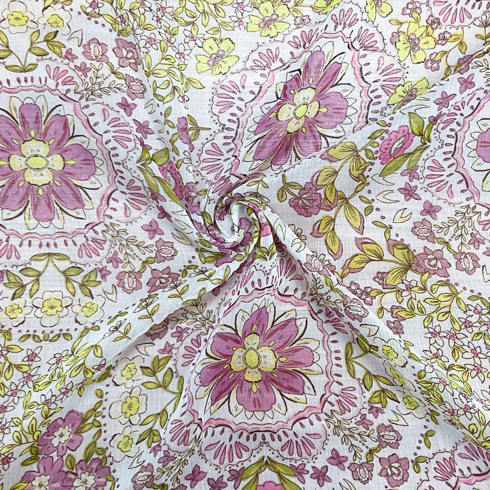 Pink-Yellow-Multi Poly Floral Printed Crinkle Yoryu Chiffon Woven Fabric