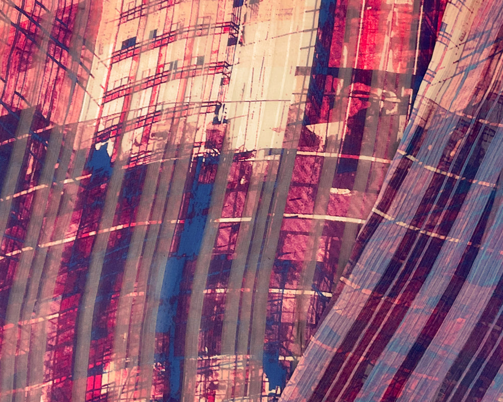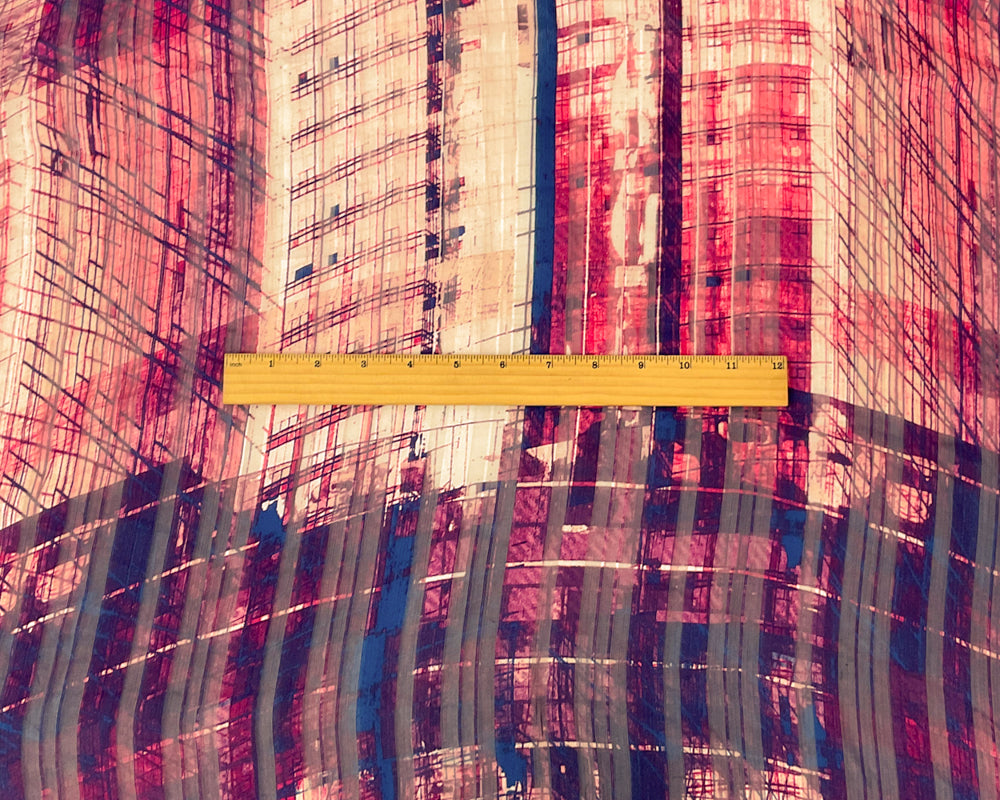 Purple-Multi Abstract Print Satin Stripe Chiffon Woven Fabric