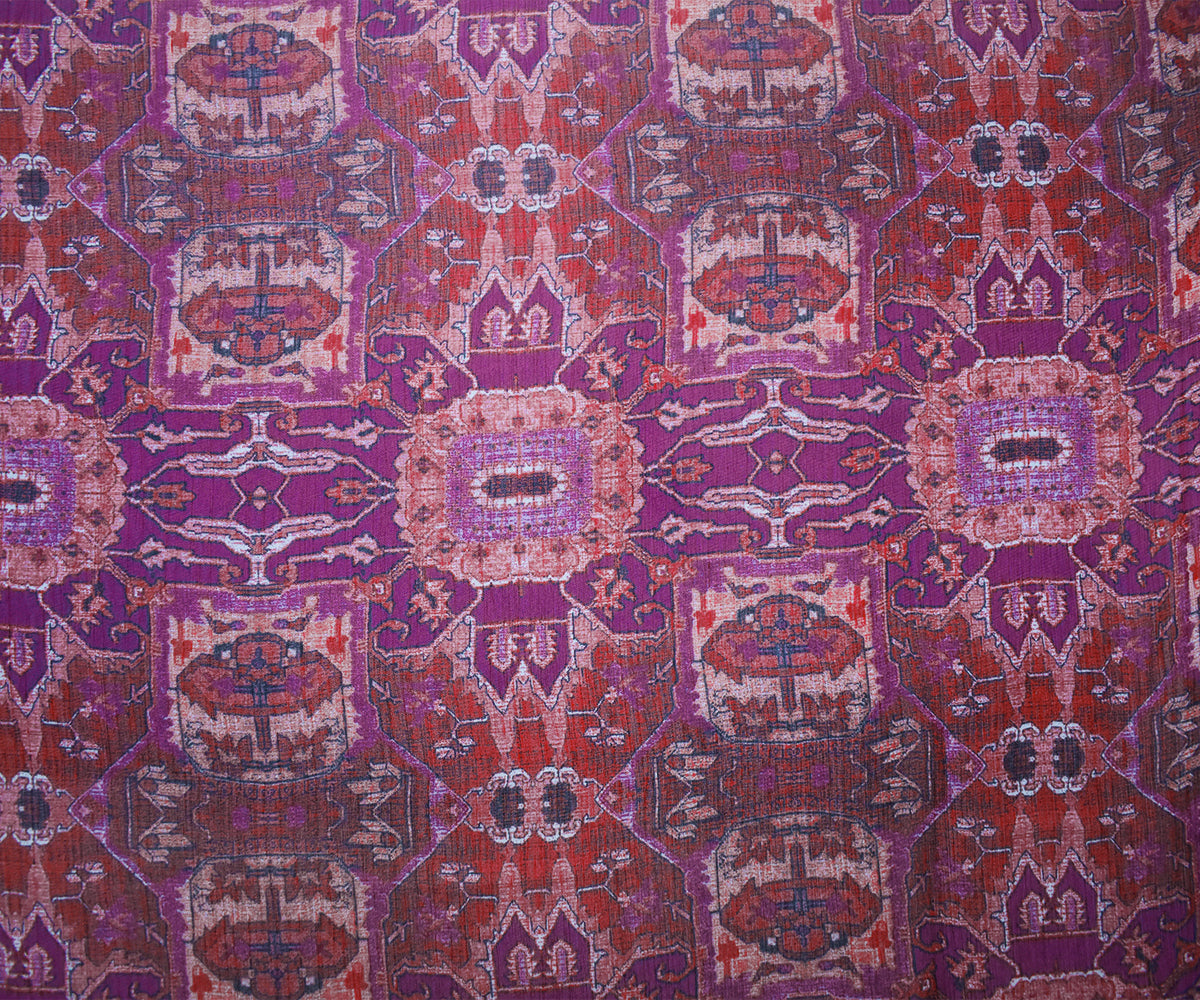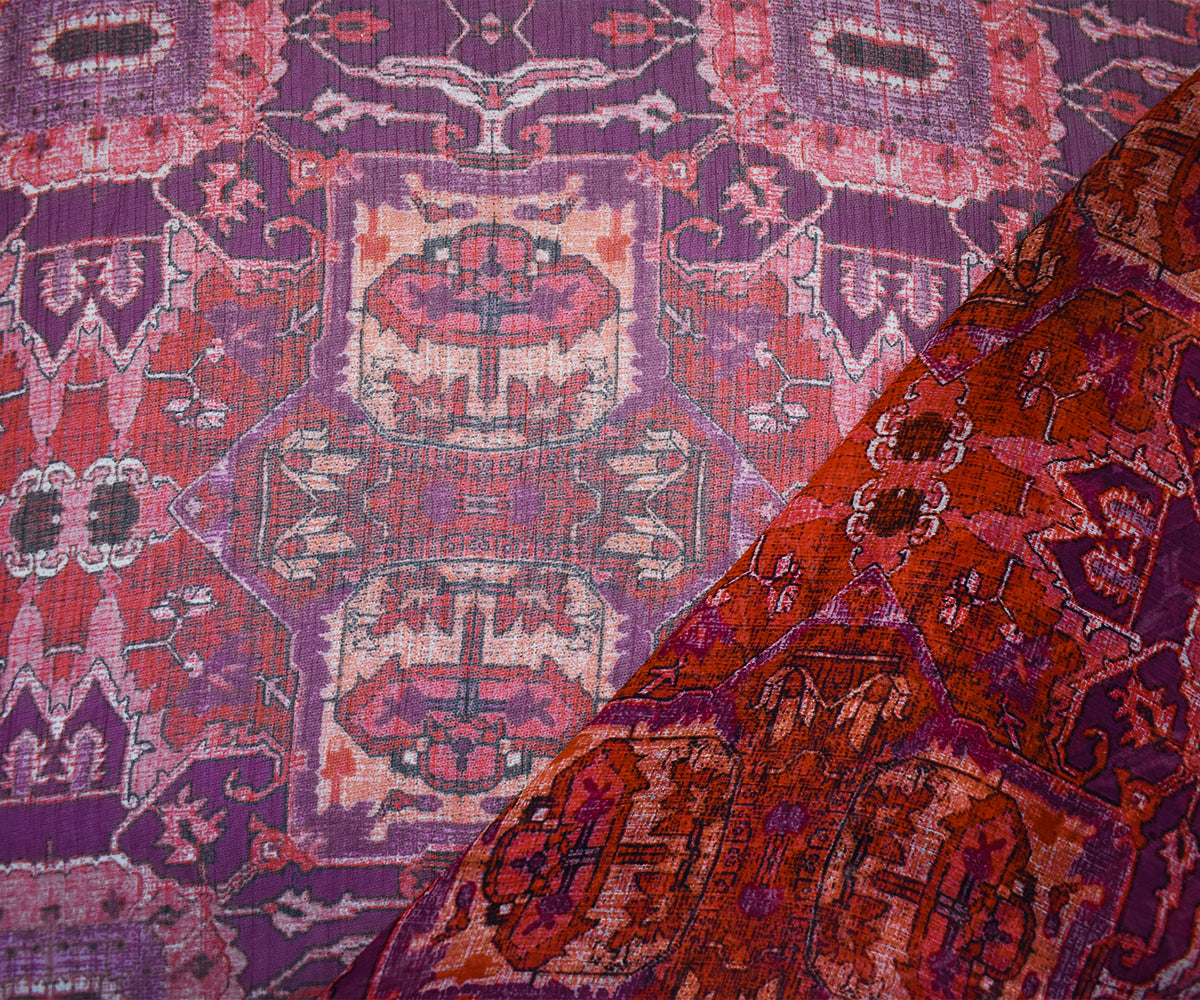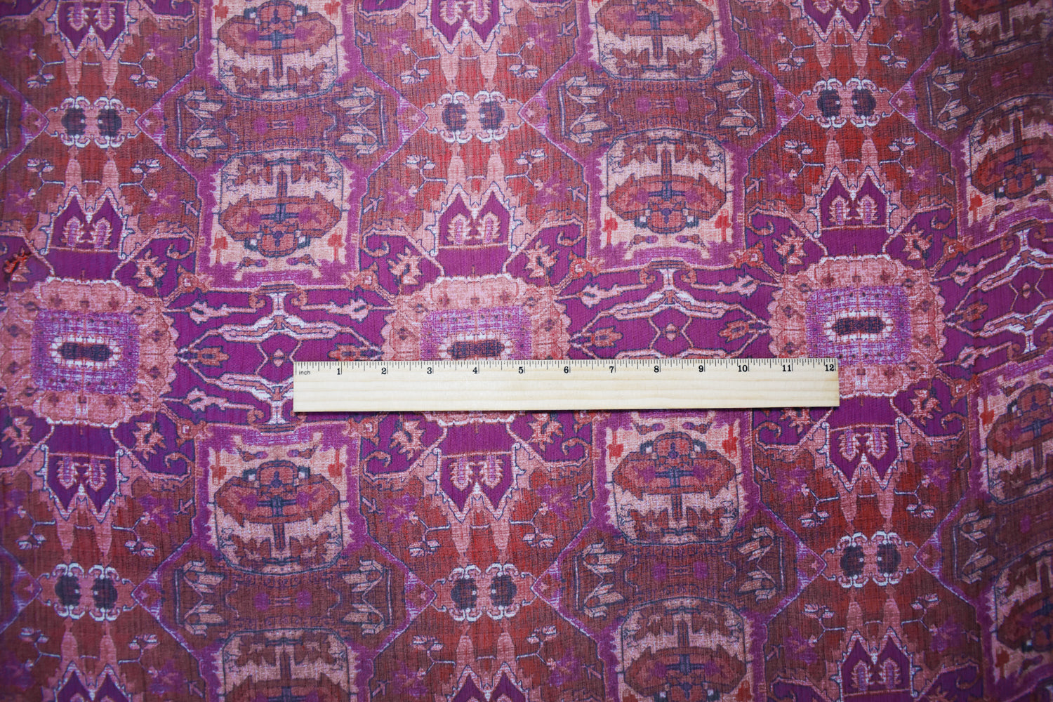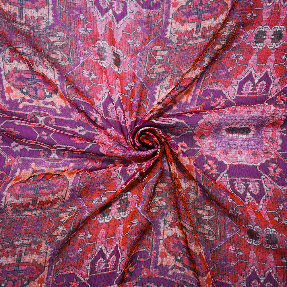 Purple-Red-Multi Poly Aztec Printed Crinkle Yoryu Chiffon Woven Fabric