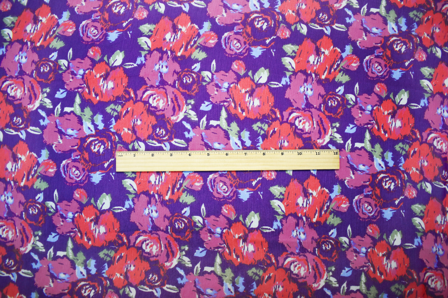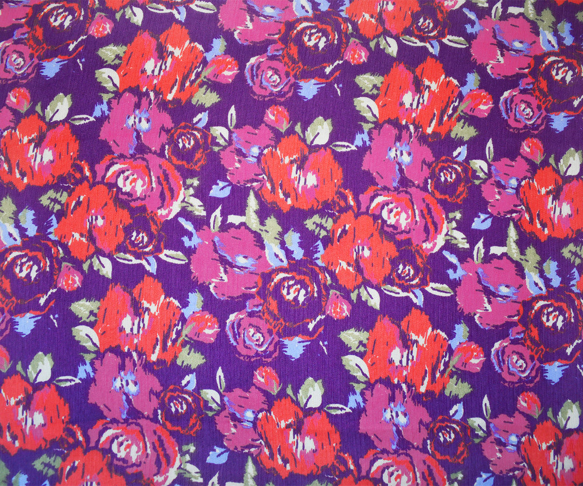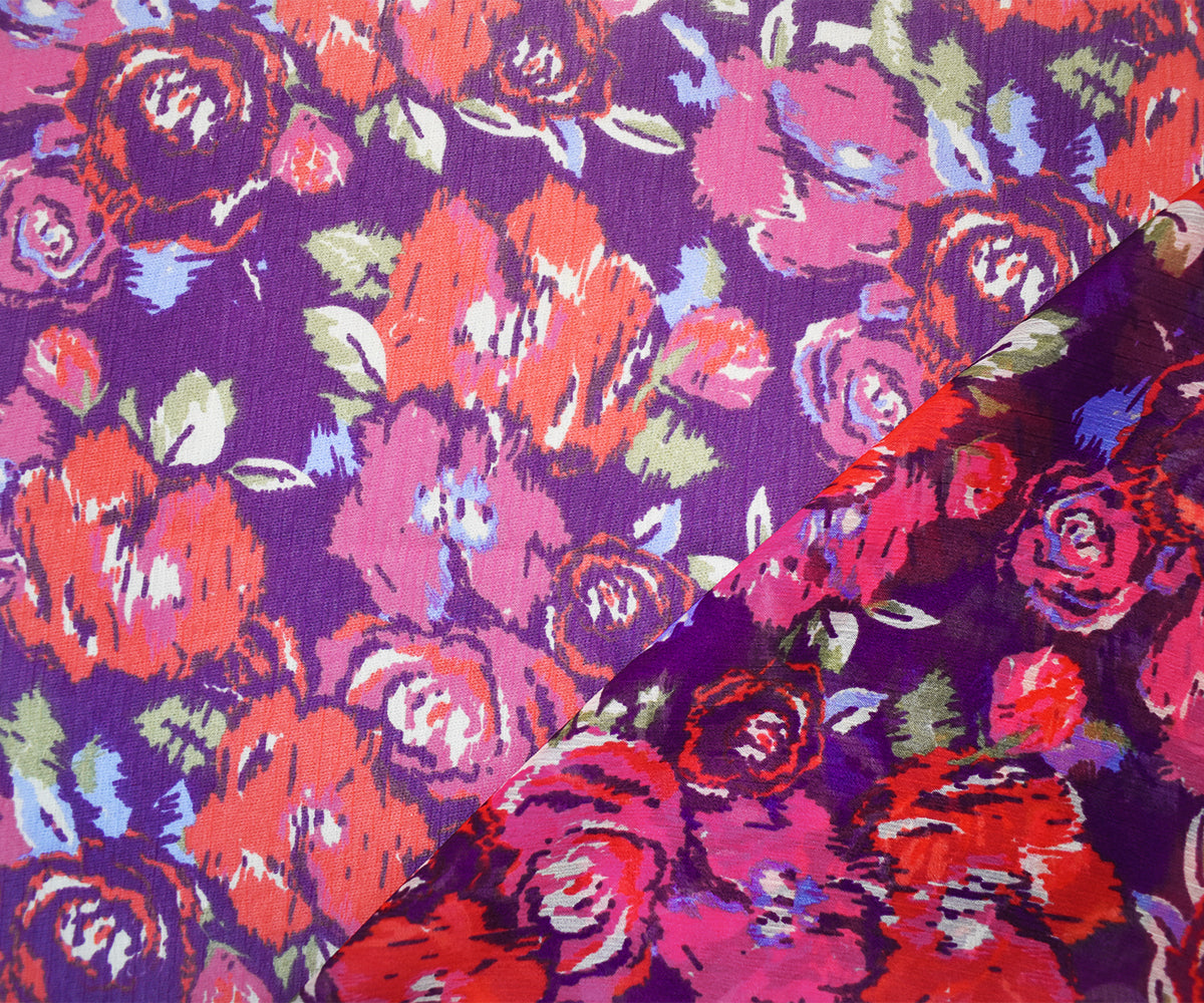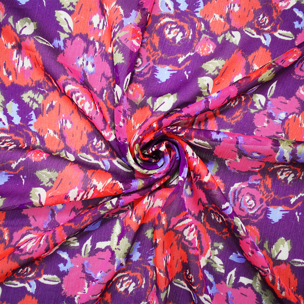 -Purple-Red-Multi Poly Ink Floral Printed Crinkle Yoryu Chiffon Woven Fabric