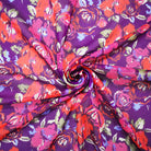 Purple-Red-Multi Poly Ink Floral Printed Crinkle Yoryu Chiffon Woven Fabric