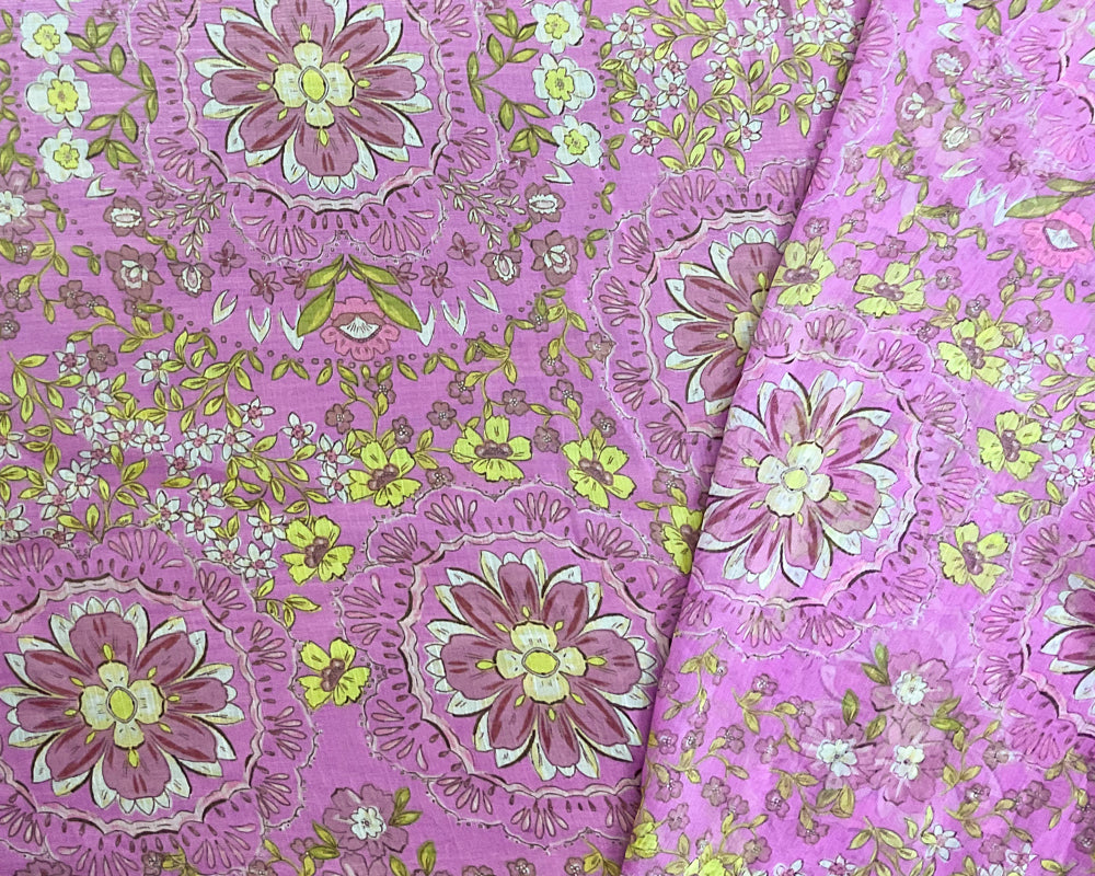 Purple-Yellow-Multi Poly Floral Printed Crinkle Yoryu Chiffon Woven Fabric