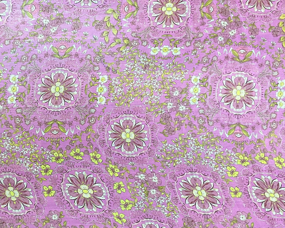 -Purple-Yellow-Multi Poly Floral Printed Crinkle Yoryu Chiffon Woven Fabric