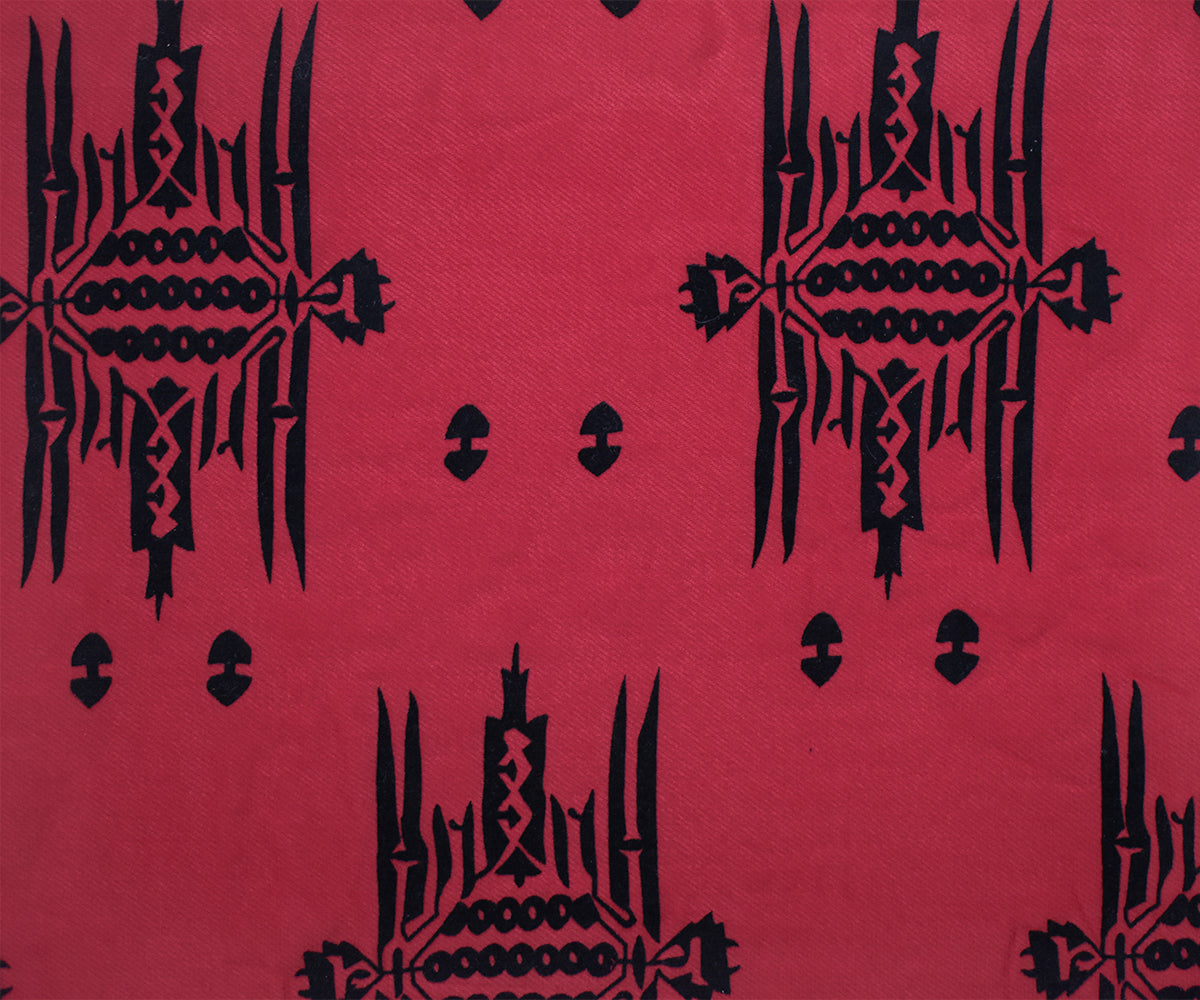 Red-Black Poly Aztec Motif Velvet Flocked Printed Chiffon Woven Fabric