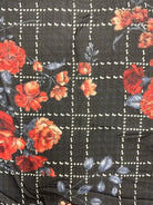 -Red, Pink, Blue, Black, & White Floral Print on Black & White Plaid Print Sheer Poly Chiffon Fabric