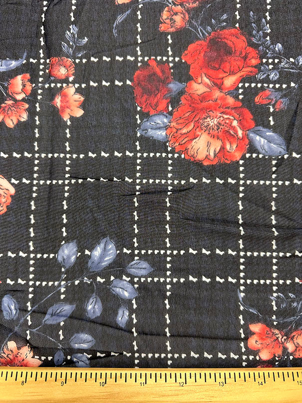 Red Floral Plaid Print Poly Chiffon Fabric