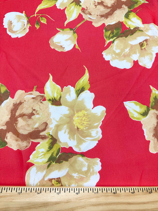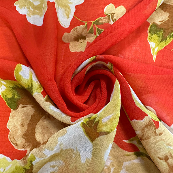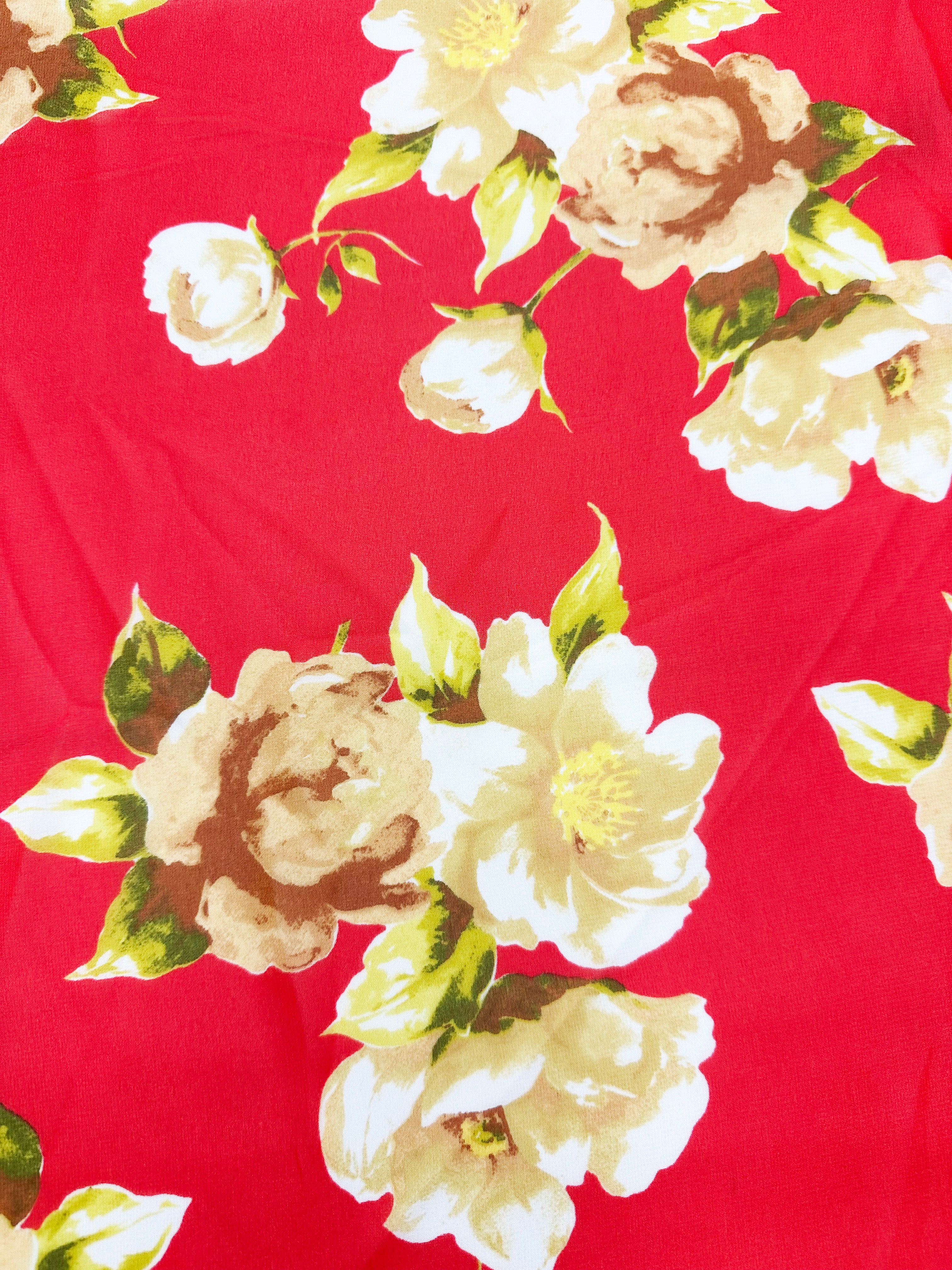 Red Floral Print Poly Chiffon Fabric