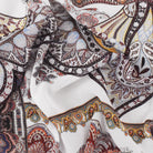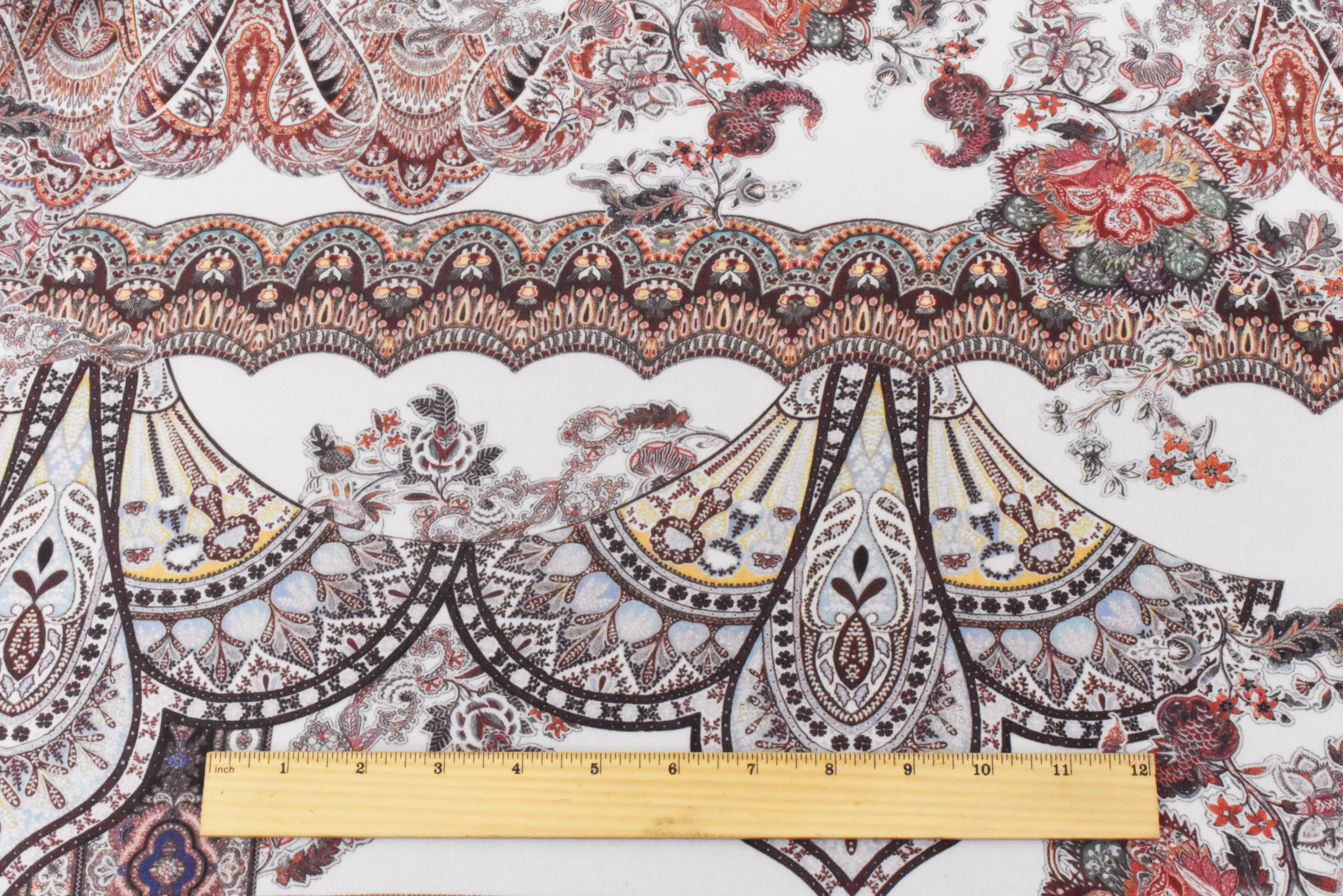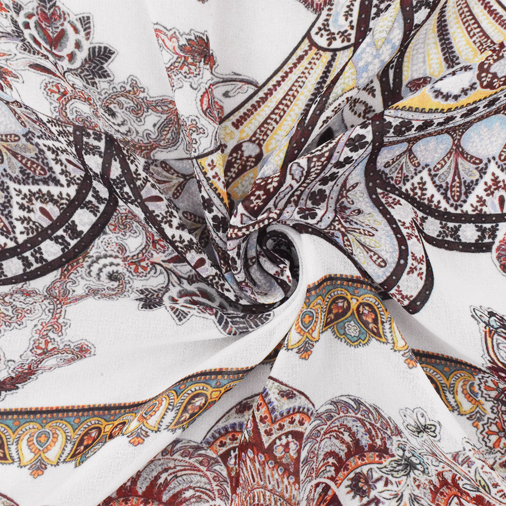-100% viscose famous designer chiffon fabric printed with paisley and bordered inspired elements
