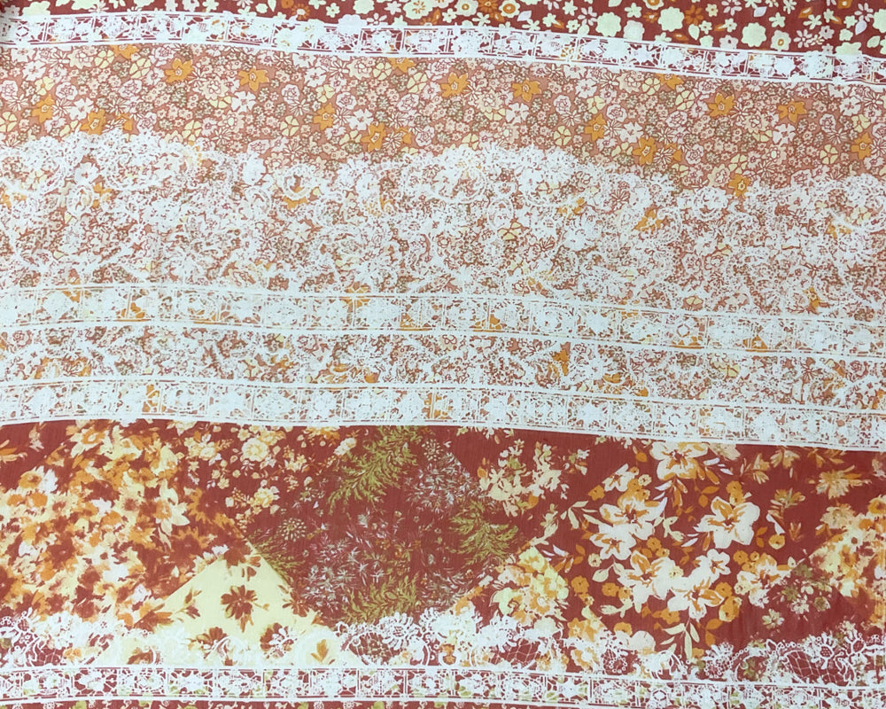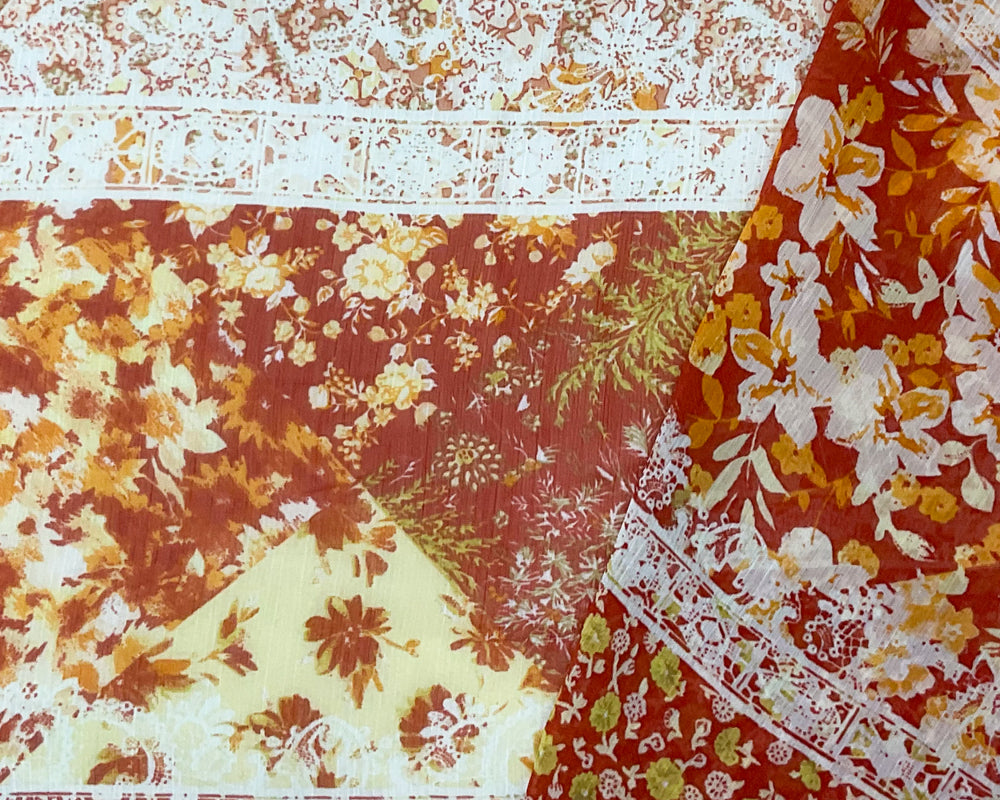 Red-Multi Poly Floral Printed Crinkle Yoryu Chiffon Woven Fabric