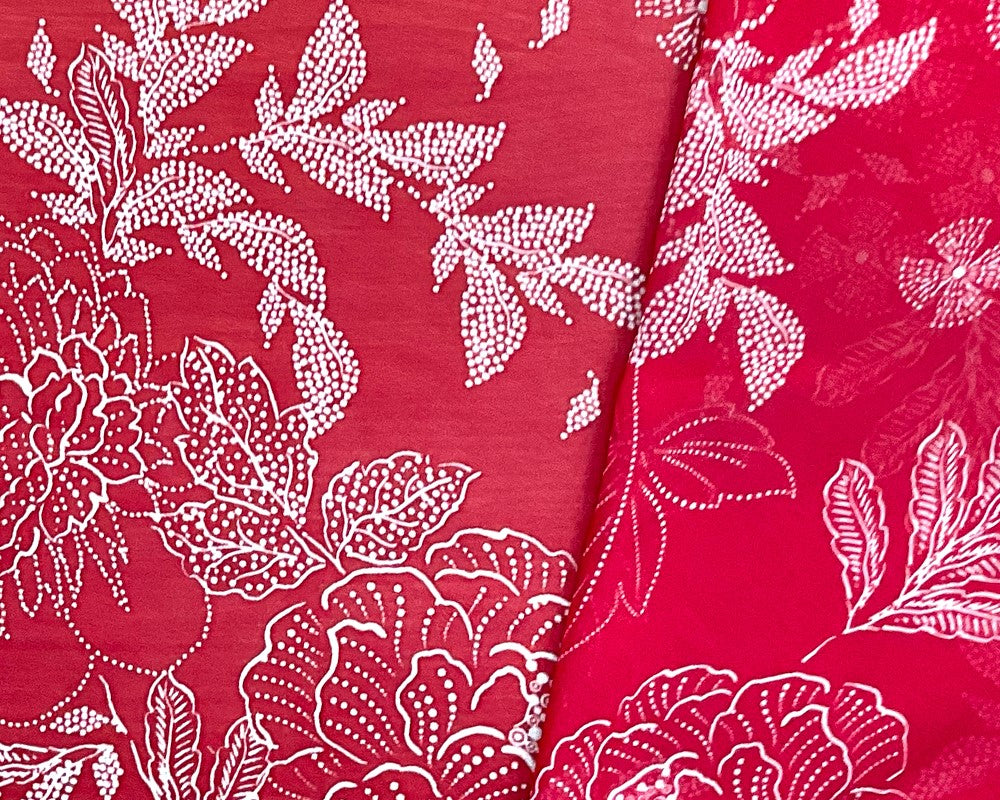 -Red-White Poly Floral Printed Chiffon Woven Fabric