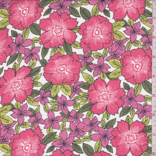Salmon Red/Fuchsia Floral Field Chiffon Fabric