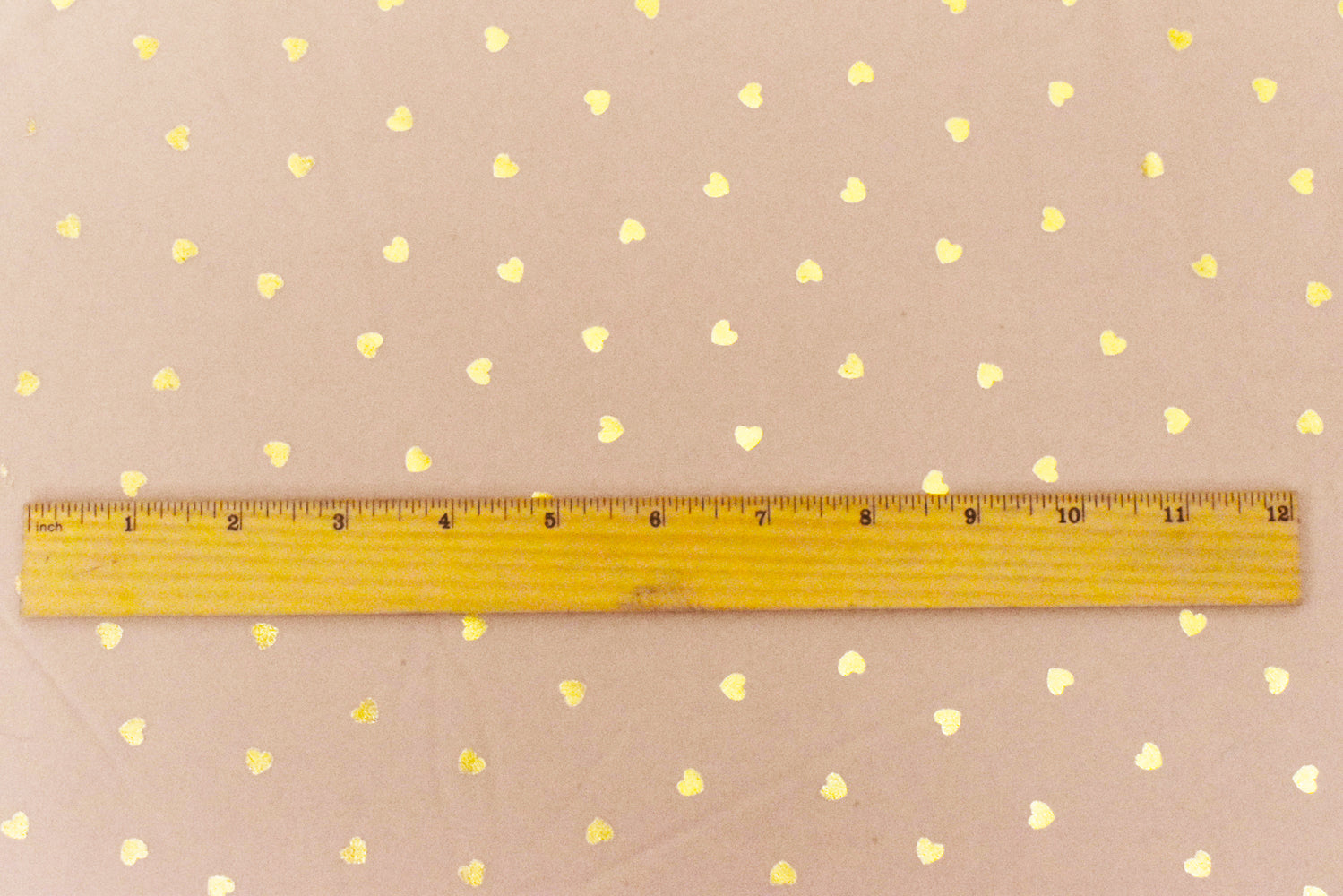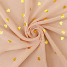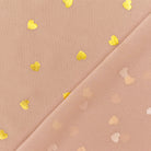 Soft Peach-Gold Heart Foil Printed Poly Chiffon Woven Fabric