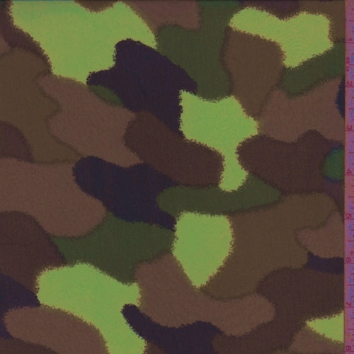Taupe/Timber/Neon Yellow Abstract Camo Chiffon Fabric