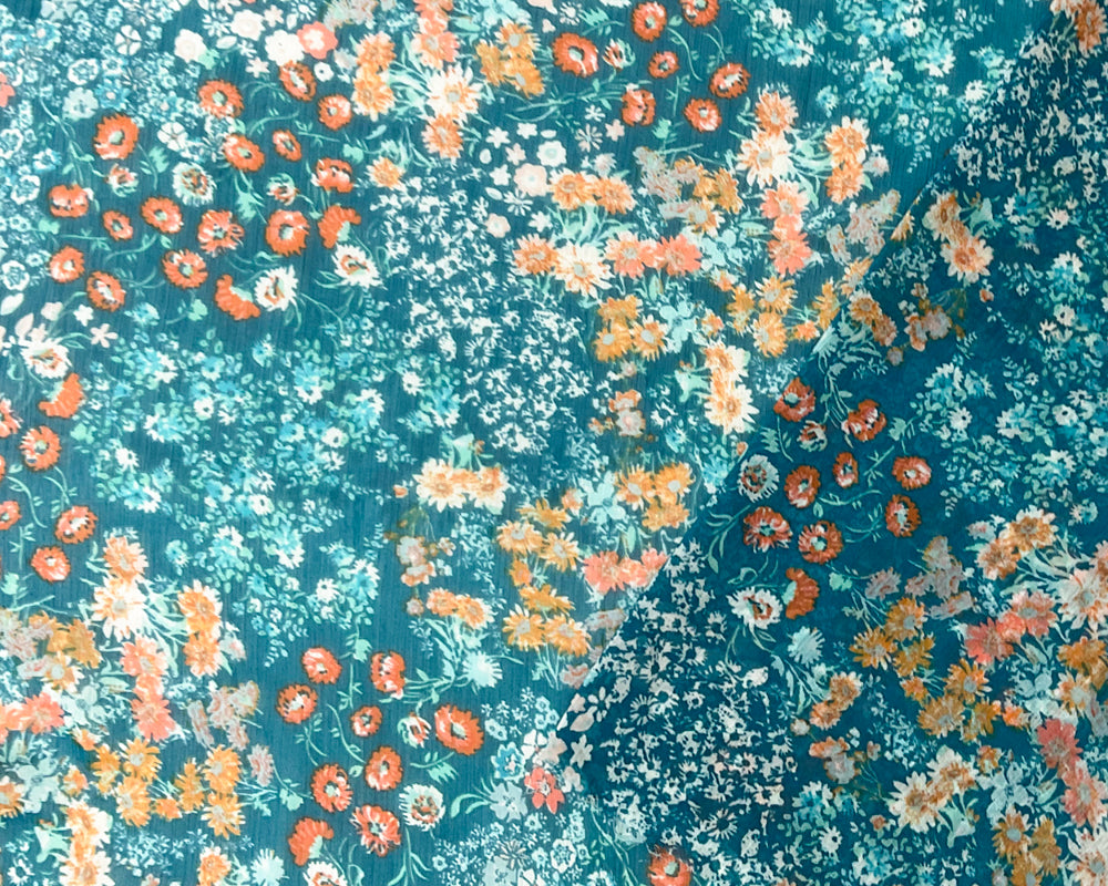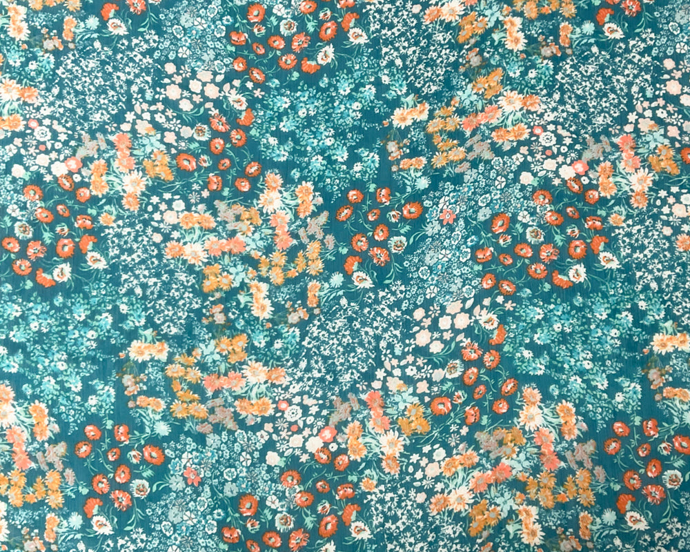 -Teal-Multi Poly Floral Printed Crinkle Yoryu Chiffon Woven Fabric