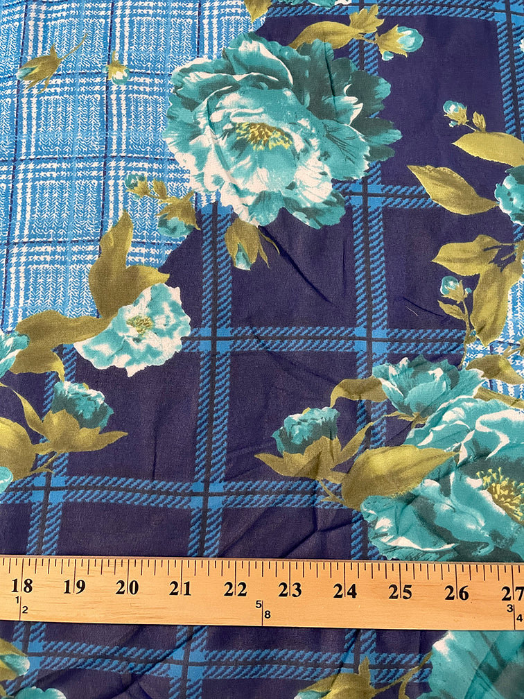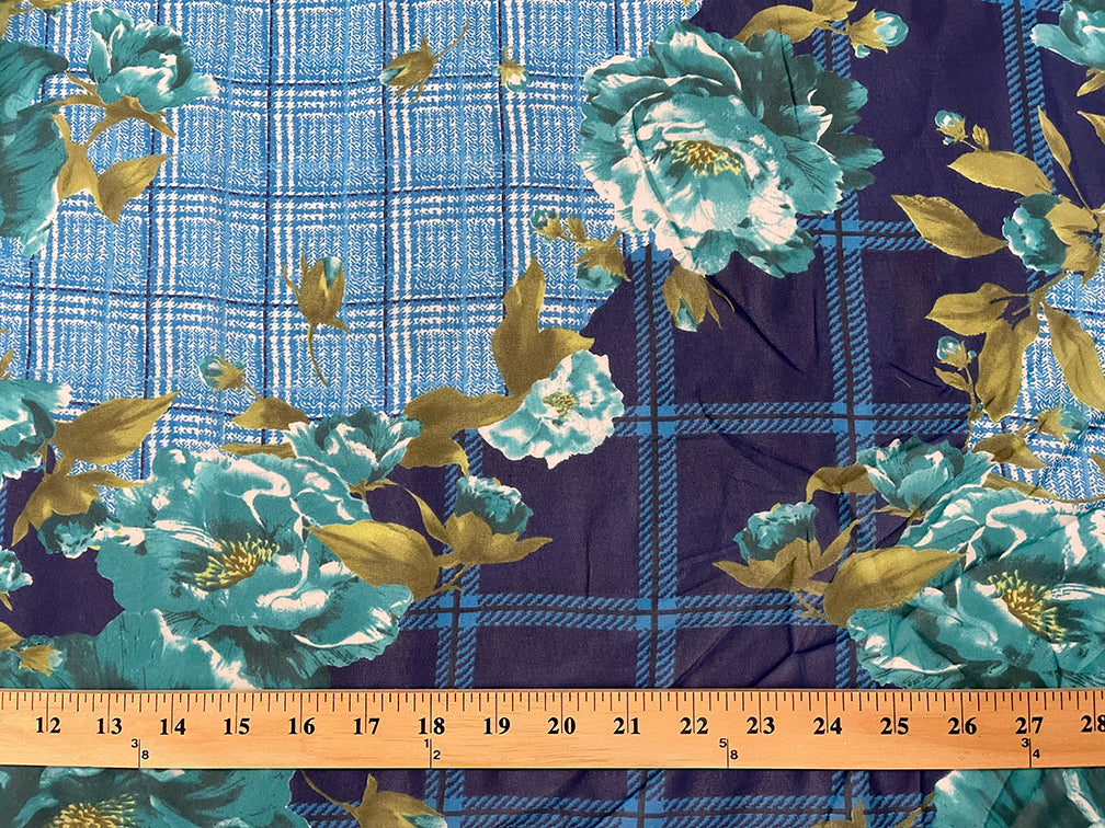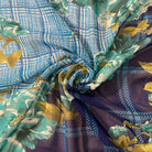Turquoise Multi Plaid Floral Print Chiffon Fabric
