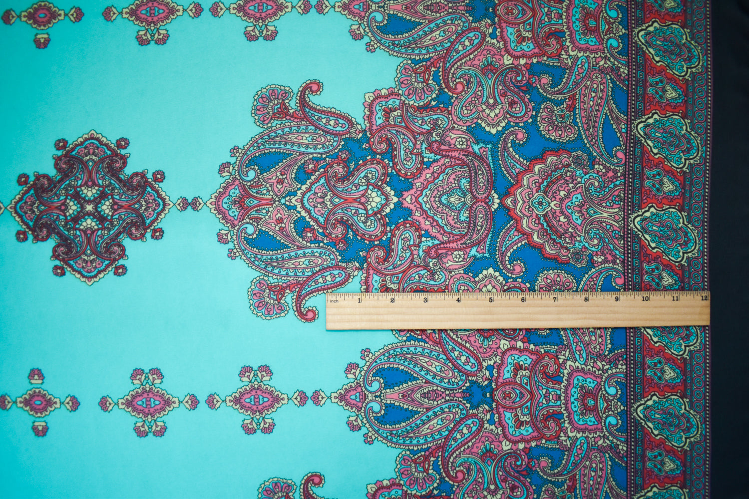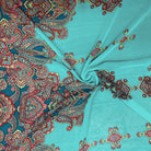 -Turquoise-Red-Multi Paisely Border Printed Chiffon Woven Fabric
