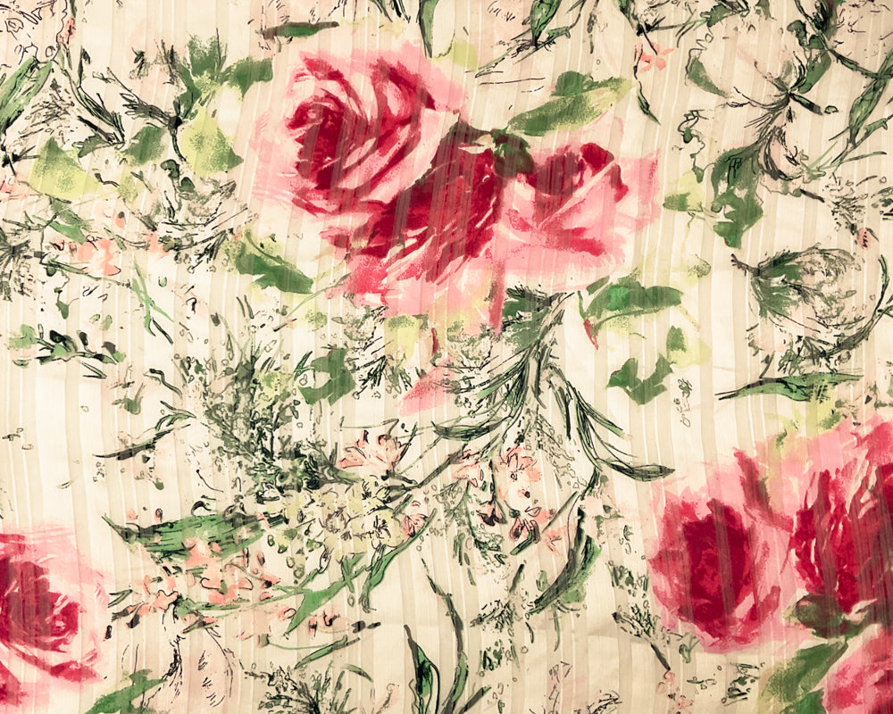 -White-Multi Poly Floral Print Stripe Satin Chiffon Woven Fabric