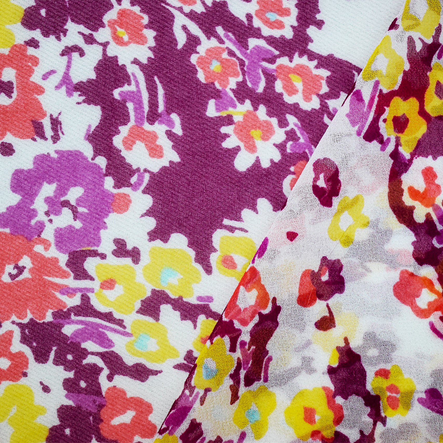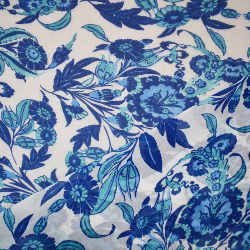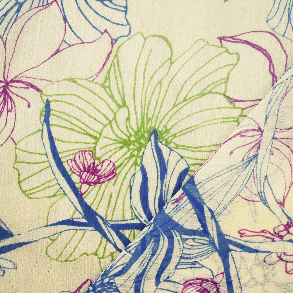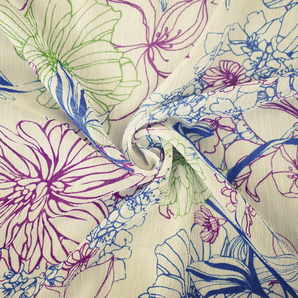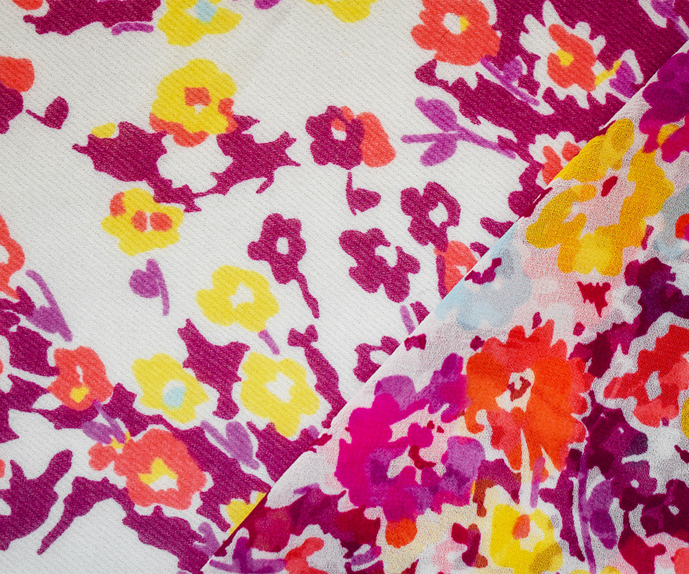 Chiffon is a lightweight, sheer fabric known for its delicate drape and slightly textured, matte finish. It can be made from natural fibers like silk or cotton, or synthetic fibers like polyester or nylon. Silk chiffon is has a luster and smooth feel, while polyester chiffon is more affordable and durable. Shop our huge selection in solids and prints, including designer silk blends.