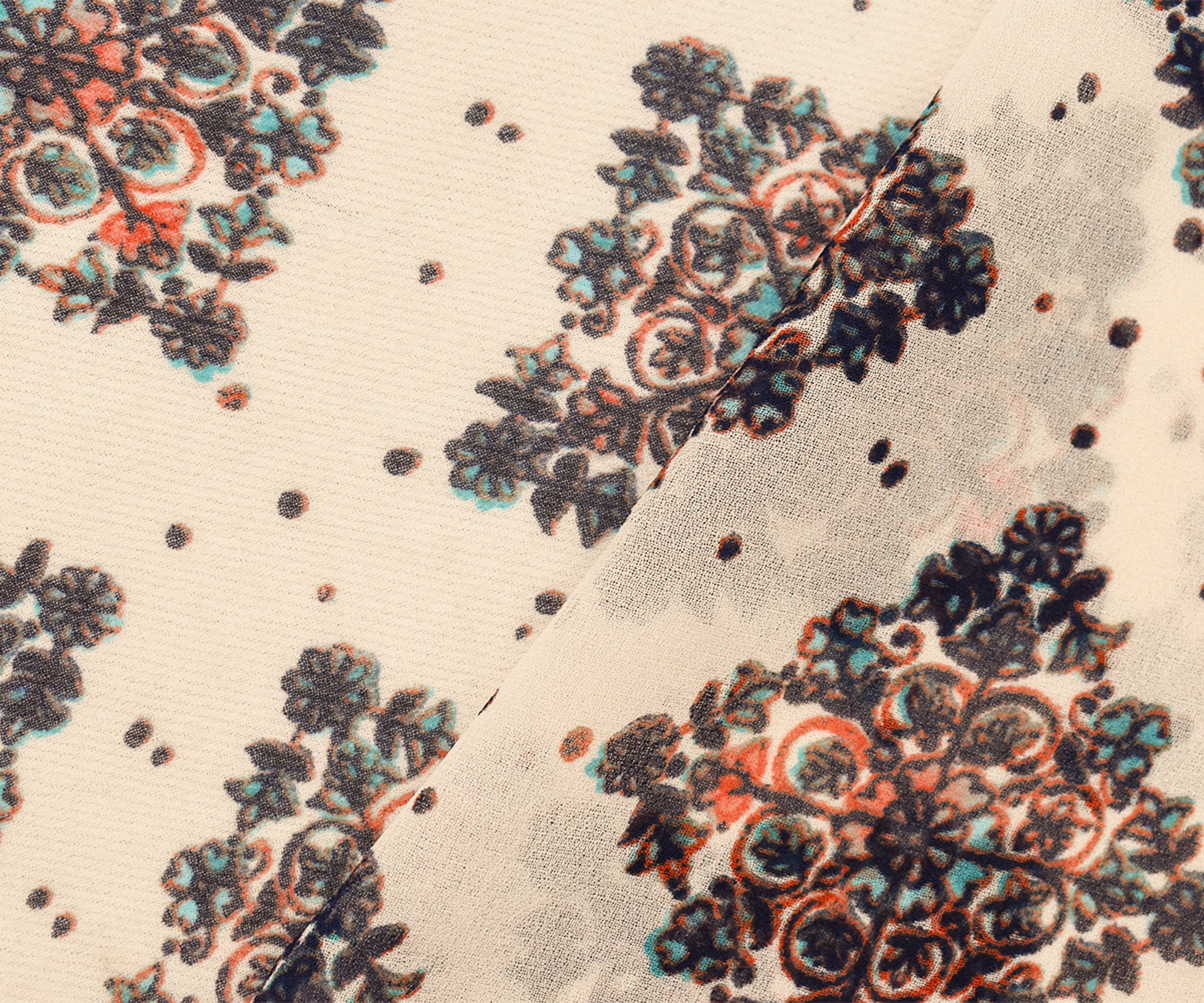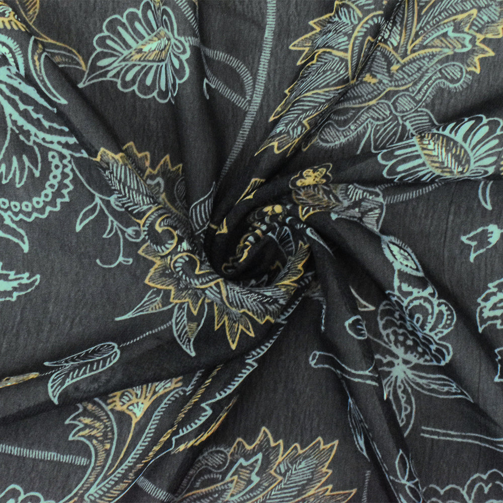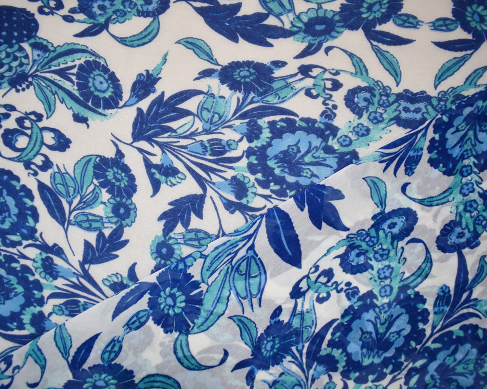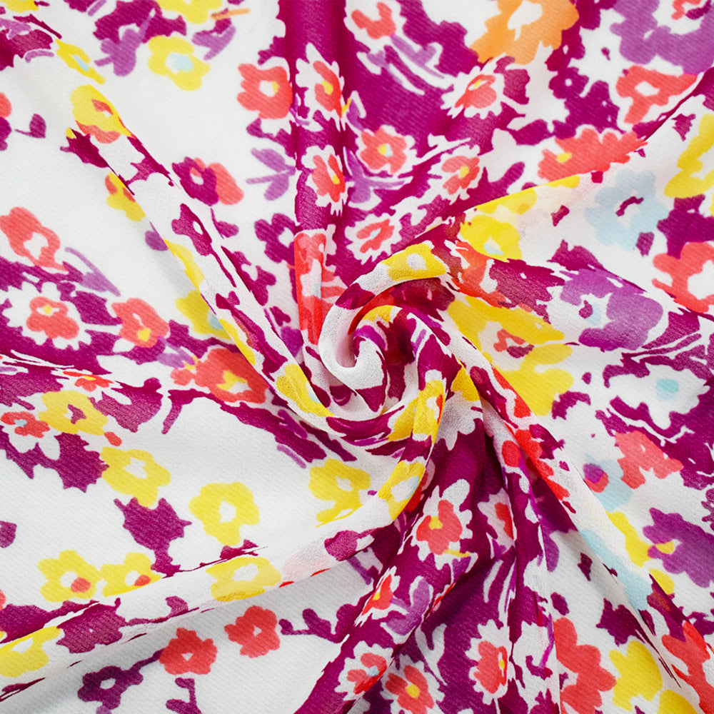 Chiffon is a lightweight, sheer fabric known for its delicate drape and slightly textured, matte finish. It can be made from natural fibers like silk or cotton, or synthetic fibers like polyester or nylon. Silk chiffon is has a luster and smooth feel, while polyester chiffon is more affordable and durable. Shop our huge selection in solids and prints, including designer silk blends.