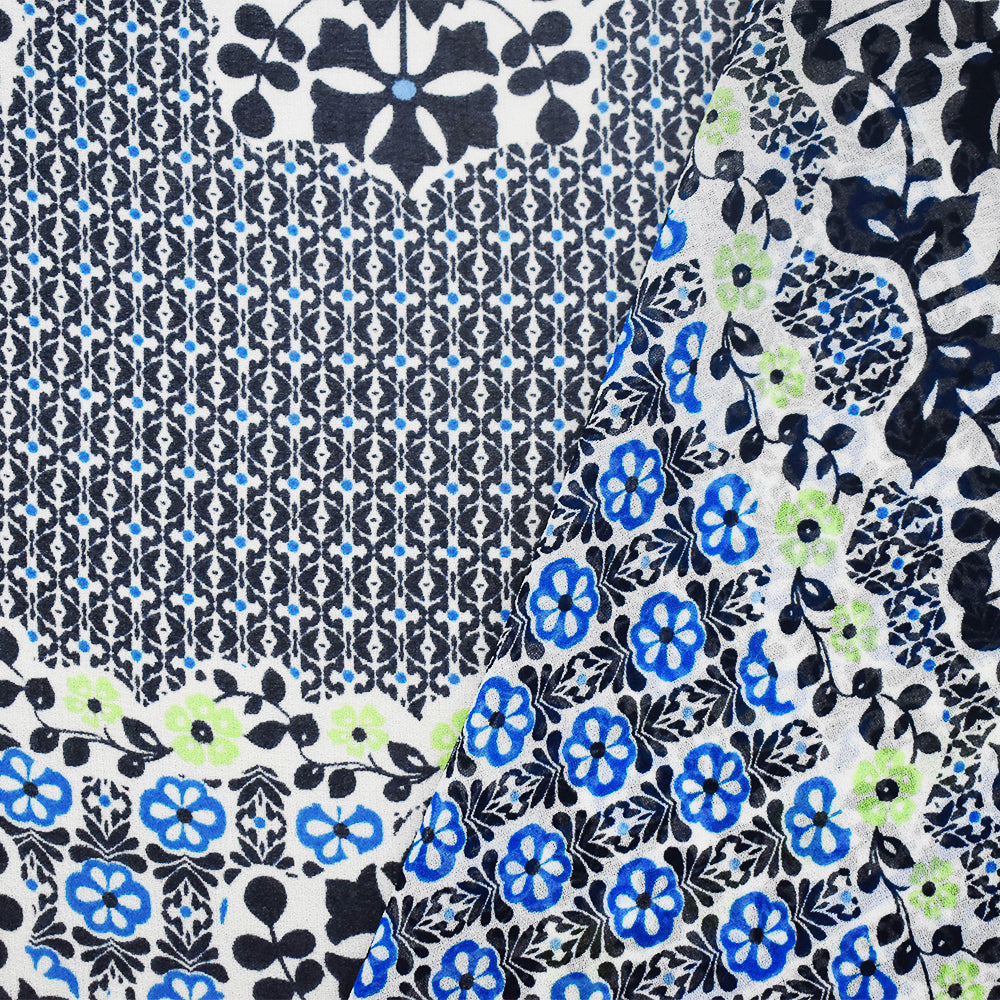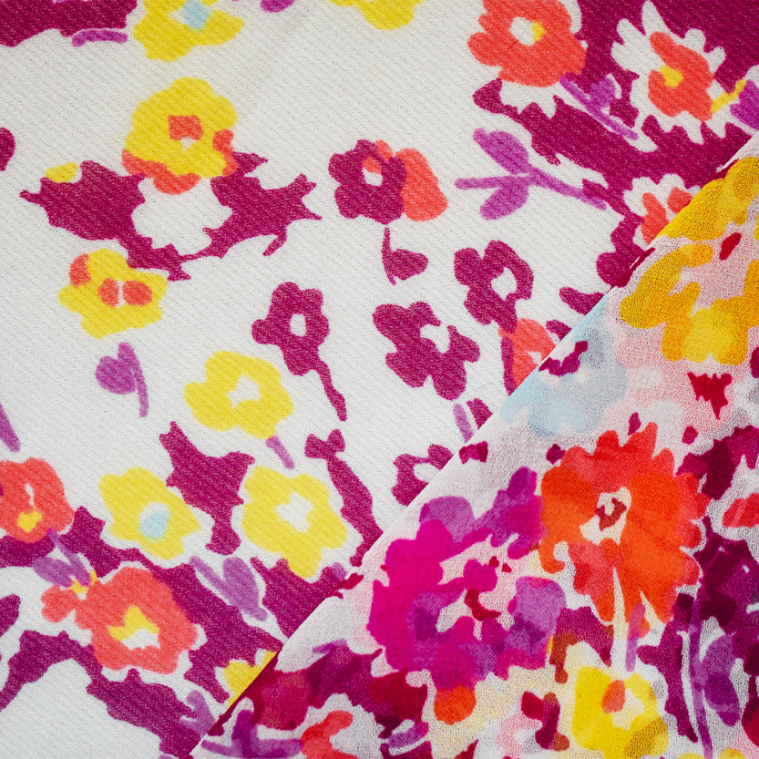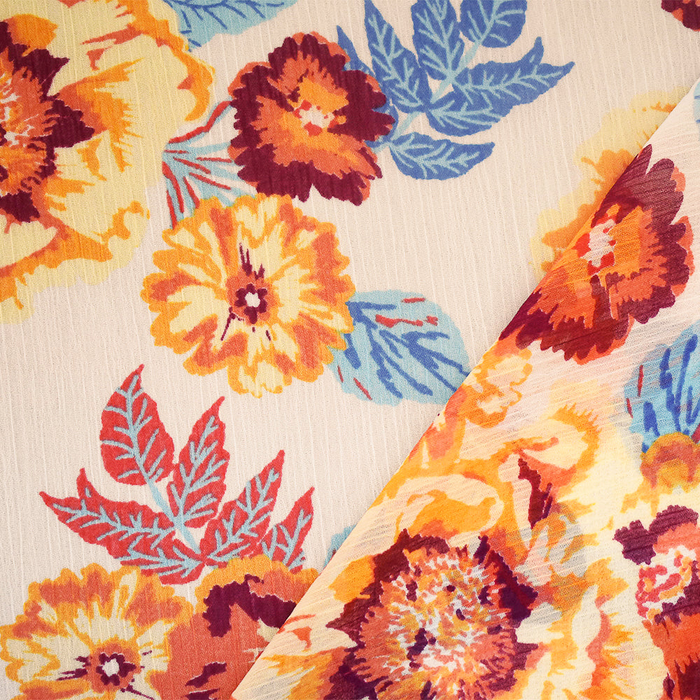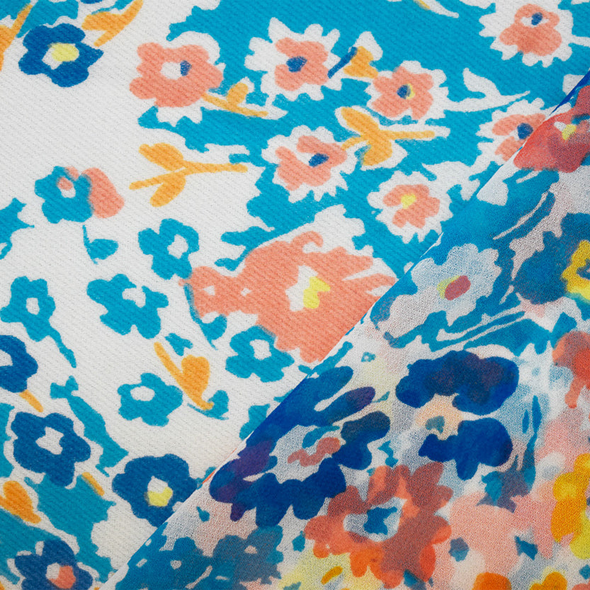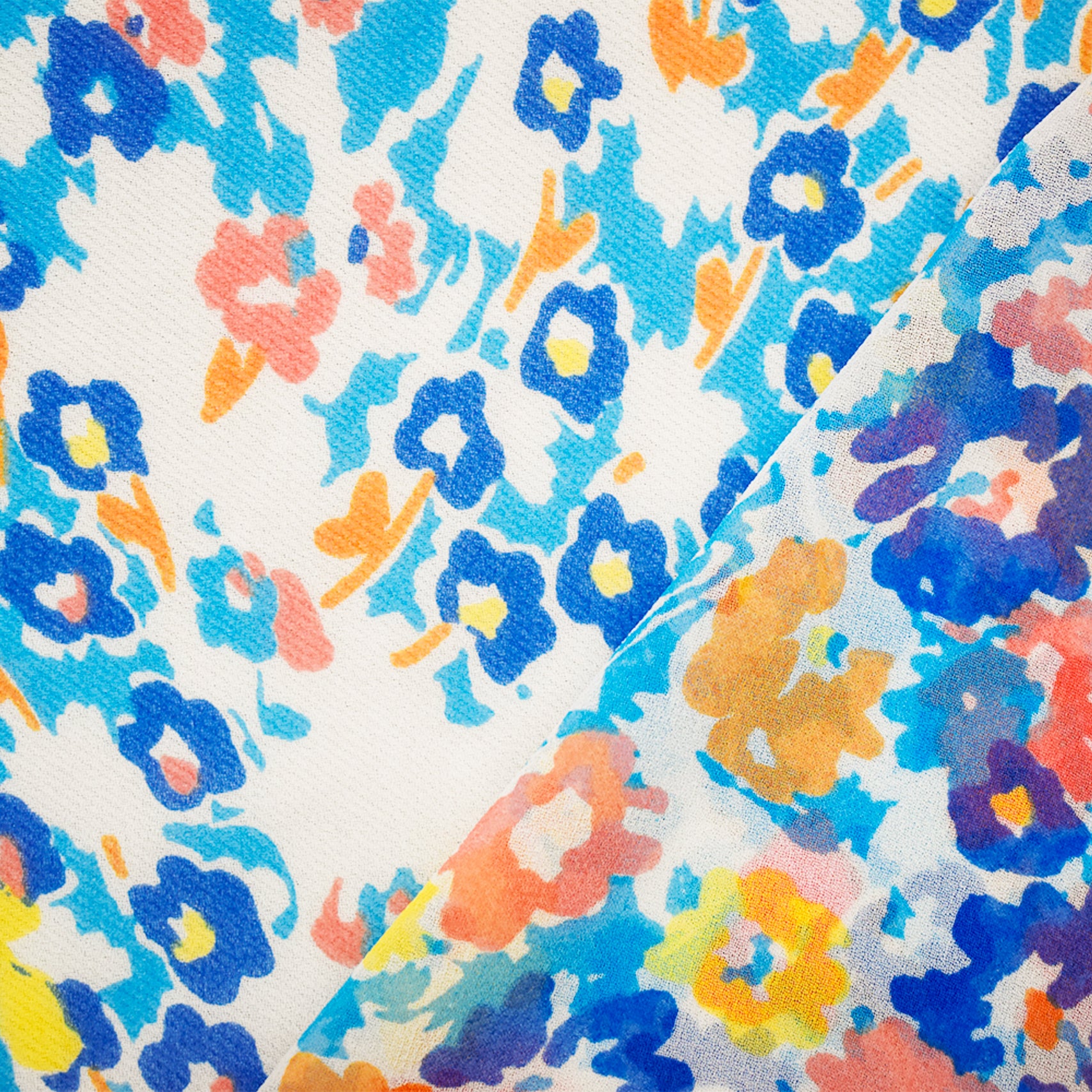 Chiffon is a lightweight, sheer fabric known for its delicate drape and slightly textured, matte finish. It can be made from natural fibers like silk or cotton, or synthetic fibers like polyester or nylon. Silk chiffon is has a luster and smooth feel, while polyester chiffon is more affordable and durable. Shop our huge selection in solids and prints, including designer silk blends.