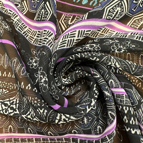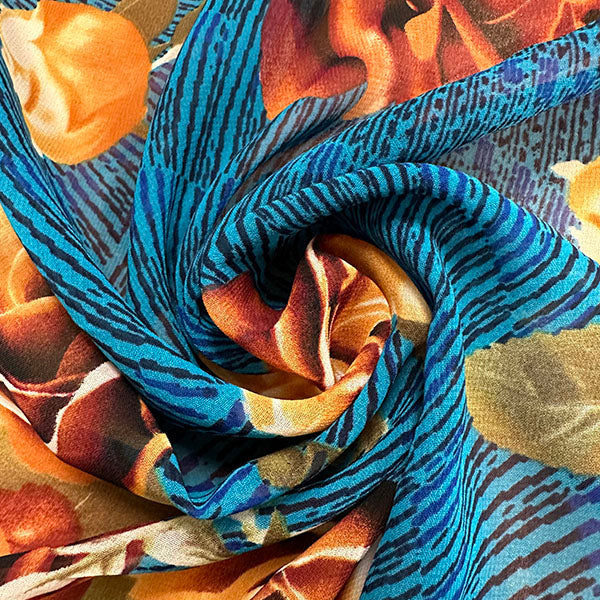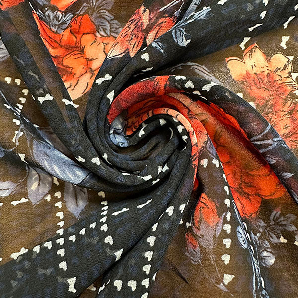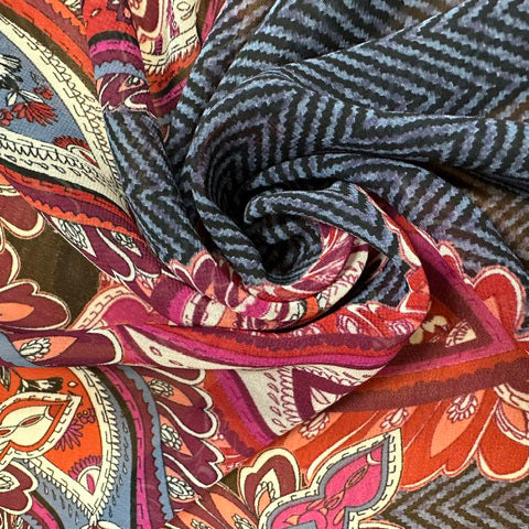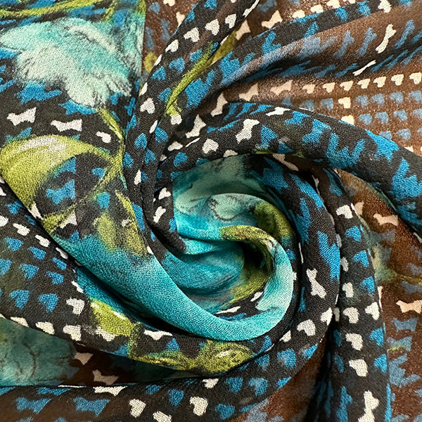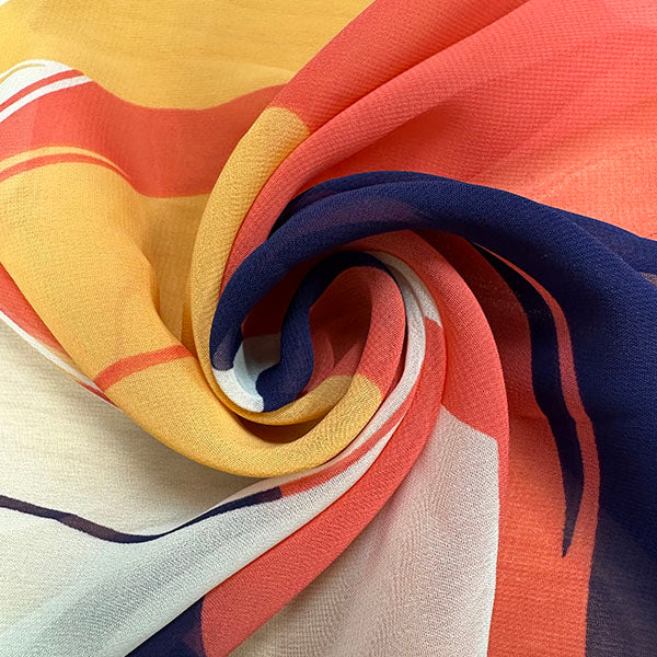 Chiffon is a lightweight, sheer fabric known for its delicate drape and slightly textured, matte finish. It can be made from natural fibers like silk or cotton, or synthetic fibers like polyester or nylon. Silk chiffon is has a luster and smooth feel, while polyester chiffon is more affordable and durable. Shop our huge selection in solids and prints, including designer silk blends.