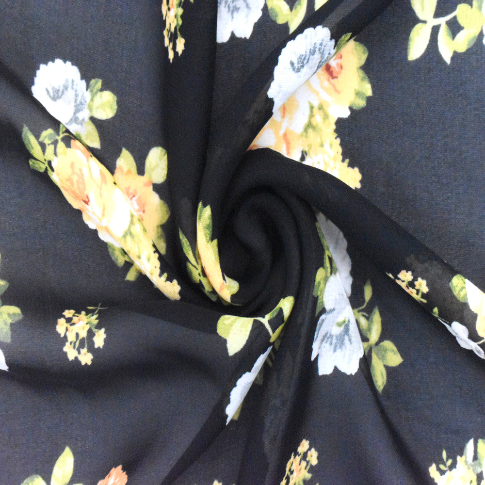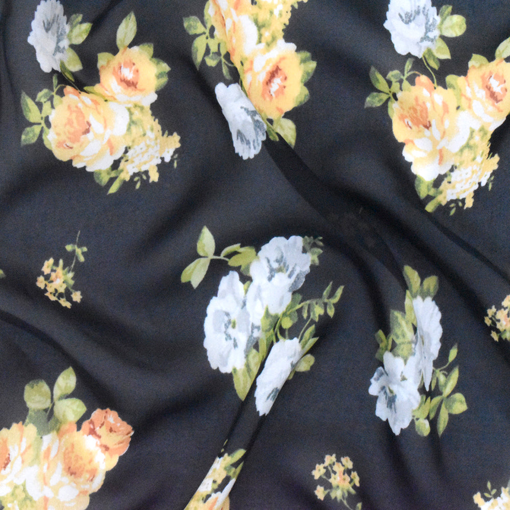 Chiffon is a lightweight, sheer fabric known for its delicate drape and slightly textured, matte finish. It can be made from natural fibers like silk or cotton, or synthetic fibers like polyester or nylon. Silk chiffon is has a luster and smooth feel, while polyester chiffon is more affordable and durable. Shop our huge selection in solids and prints, including designer silk blends.