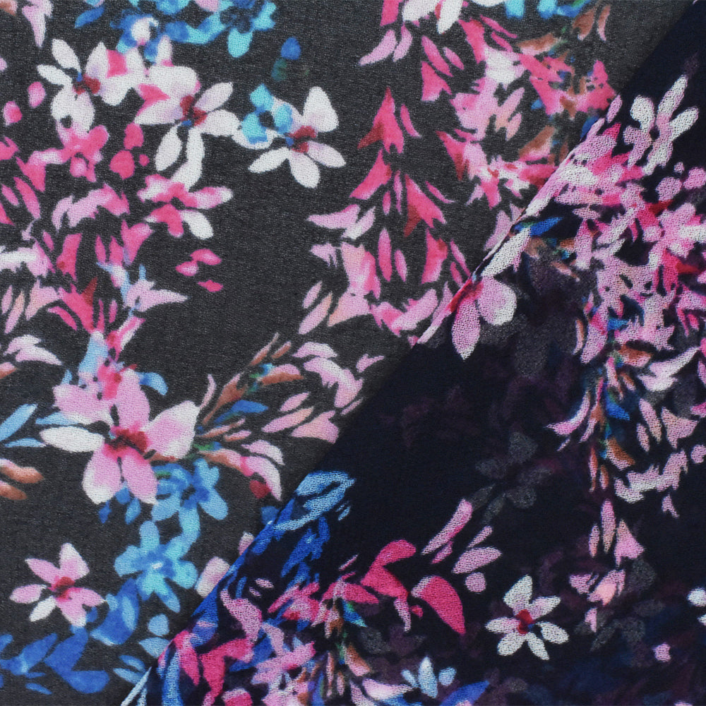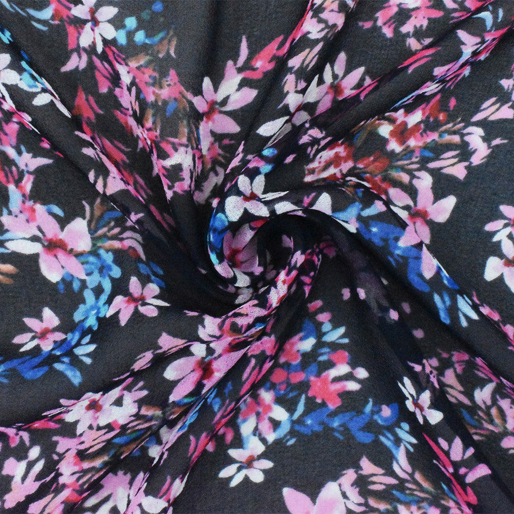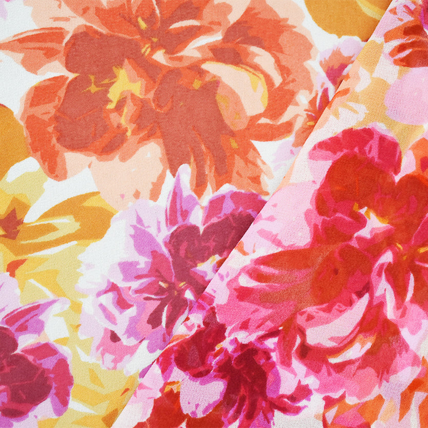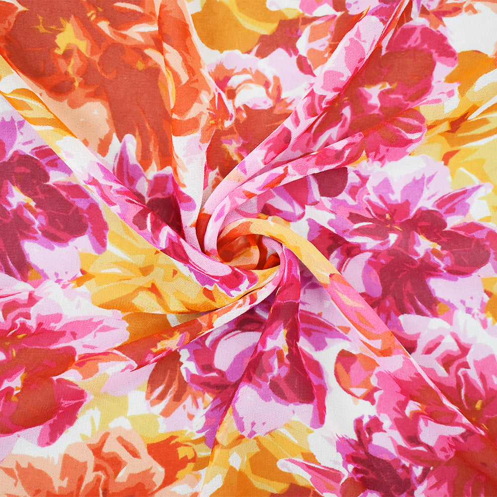 Chiffon is a lightweight, sheer fabric known for its delicate drape and slightly textured, matte finish. It can be made from natural fibers like silk or cotton, or synthetic fibers like polyester or nylon. Silk chiffon is has a luster and smooth feel, while polyester chiffon is more affordable and durable. Shop our huge selection in solids and prints, including designer silk blends.