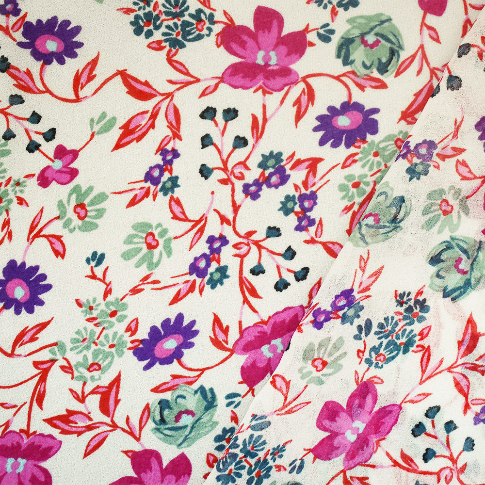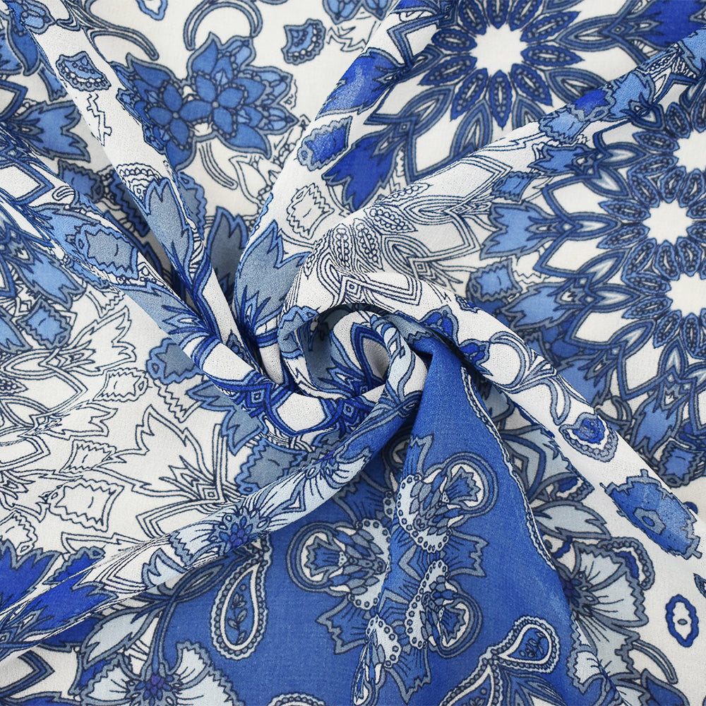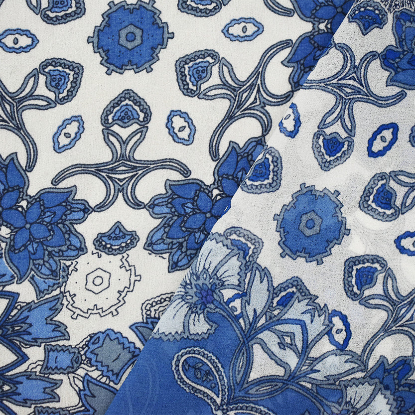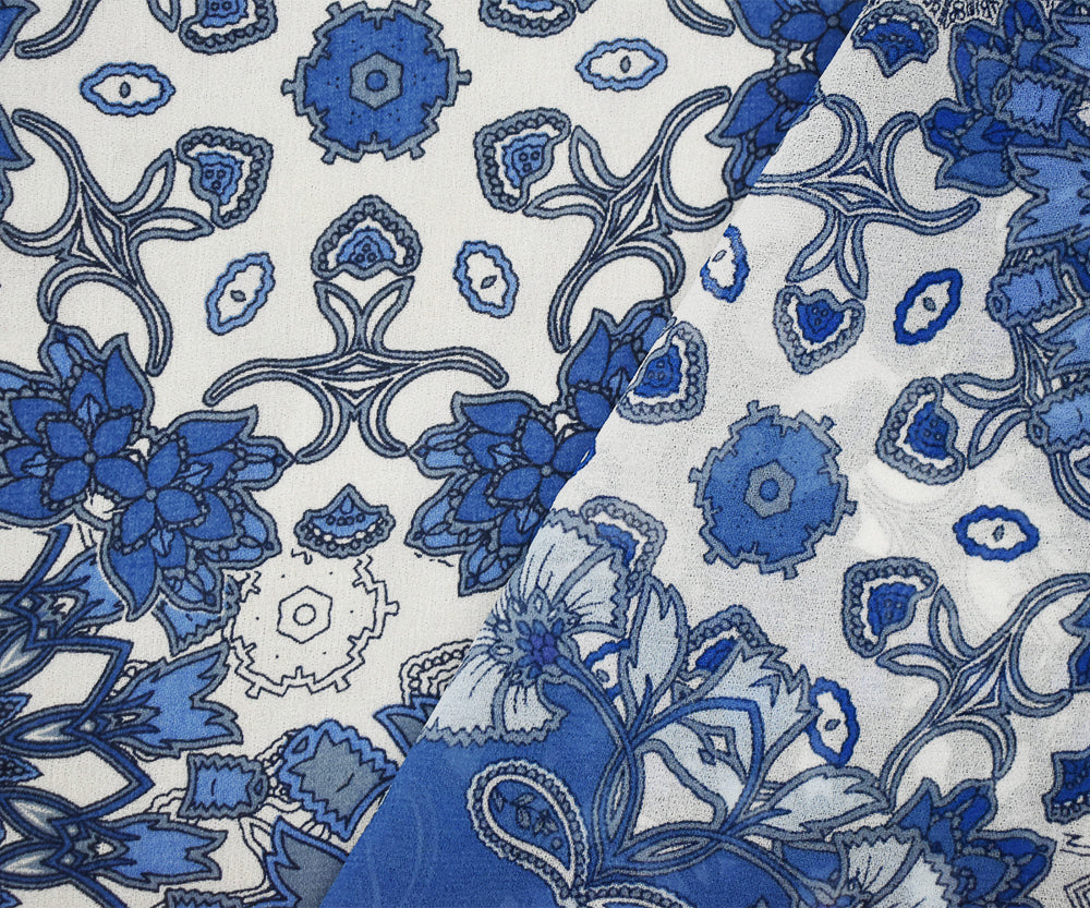 Chiffon is a lightweight, sheer fabric known for its delicate drape and slightly textured, matte finish. It can be made from natural fibers like silk or cotton, or synthetic fibers like polyester or nylon. Silk chiffon is has a luster and smooth feel, while polyester chiffon is more affordable and durable. Shop our huge selection in solids and prints, including designer silk blends.
