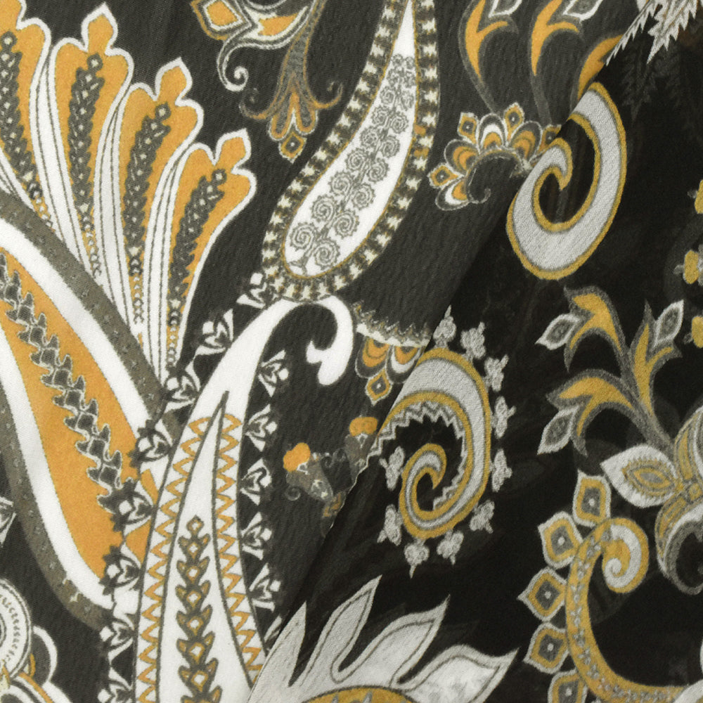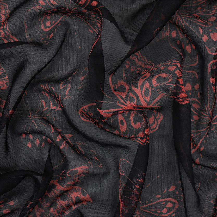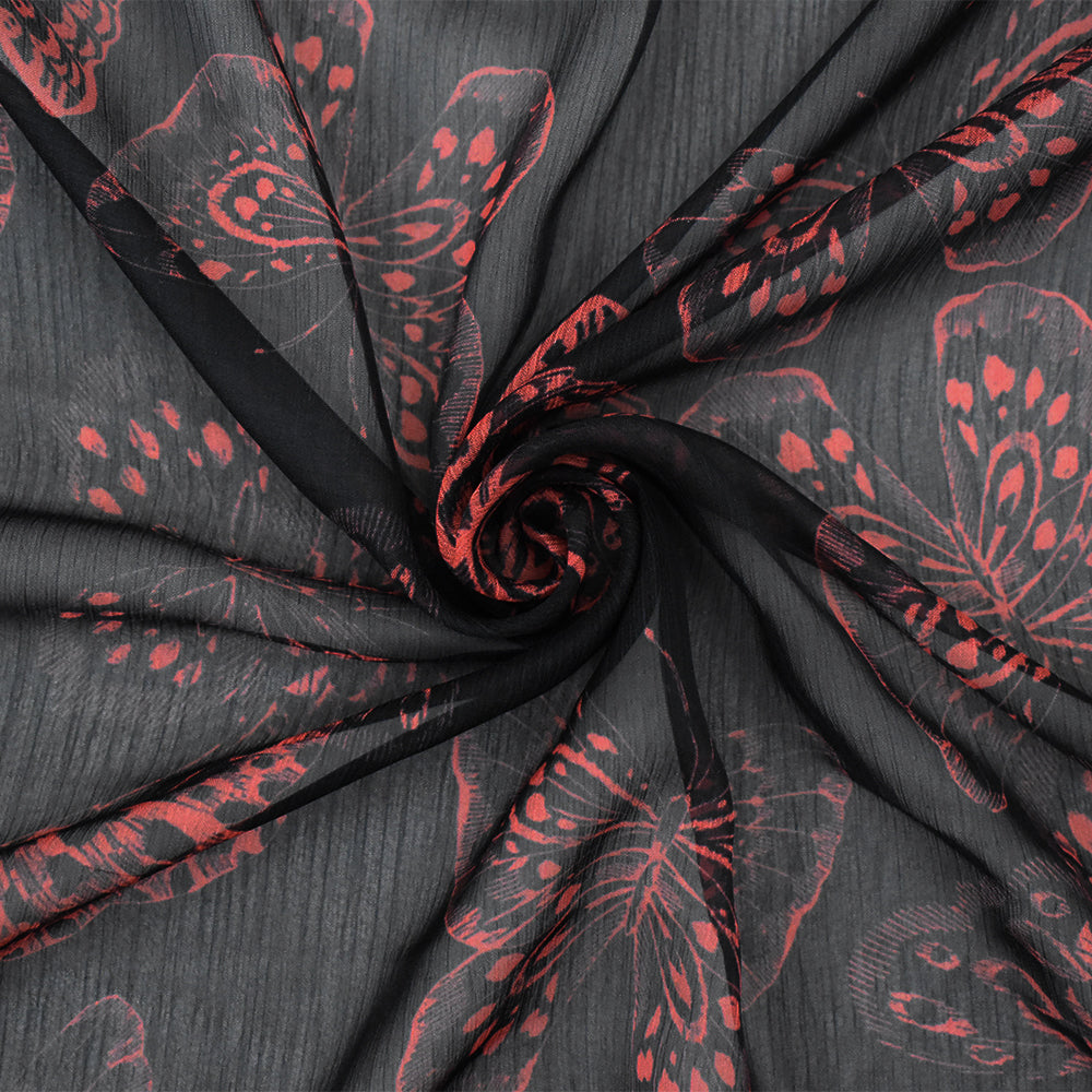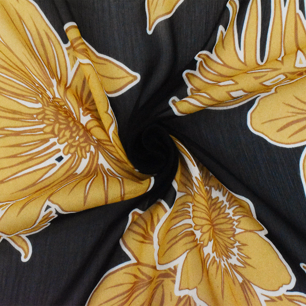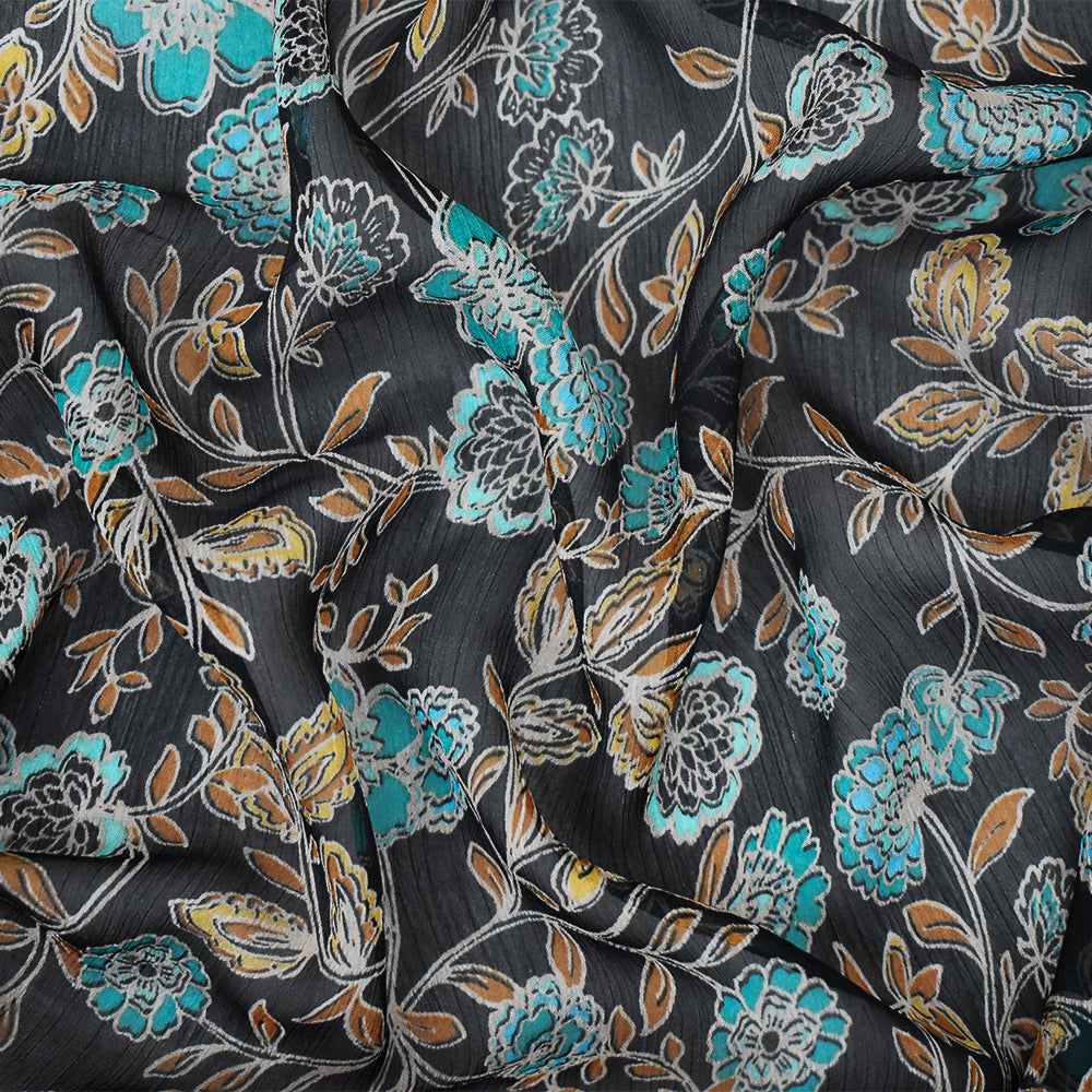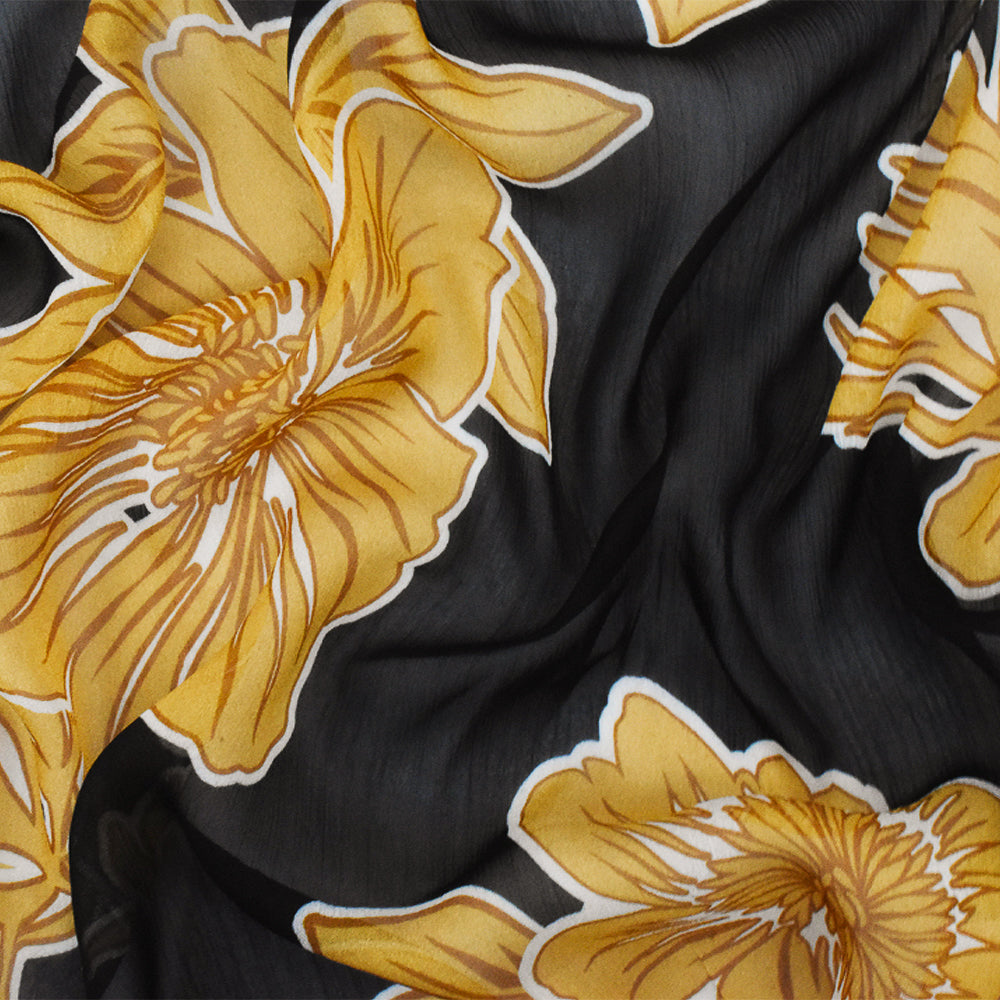 Chiffon is a lightweight, sheer fabric known for its delicate drape and slightly textured, matte finish. It can be made from natural fibers like silk or cotton, or synthetic fibers like polyester or nylon. Silk chiffon is has a luster and smooth feel, while polyester chiffon is more affordable and durable. Shop our huge selection in solids and prints, including designer silk blends.