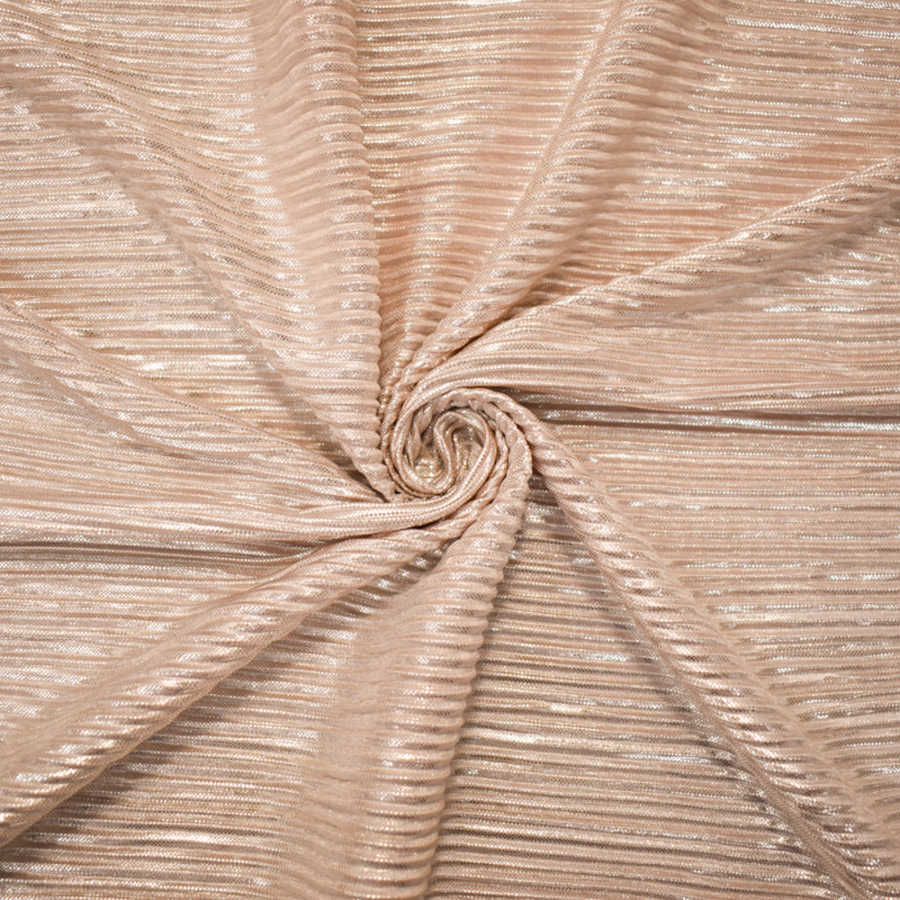 Silver-Beige Polyester Blend Stretch Foil Printed Pleated Knit Fabric