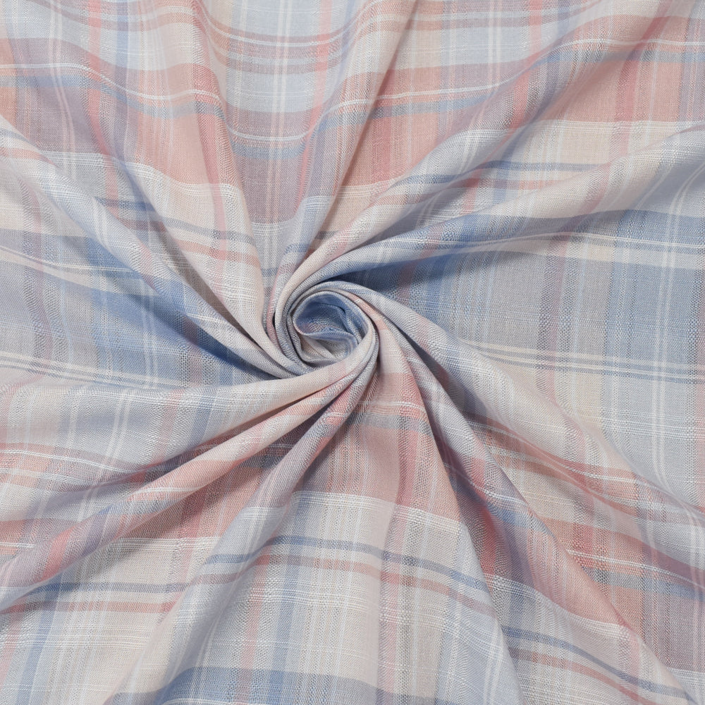 Blue-Peach-Multi Rayon Famous Maker Plaid Dobby Woven Fabric