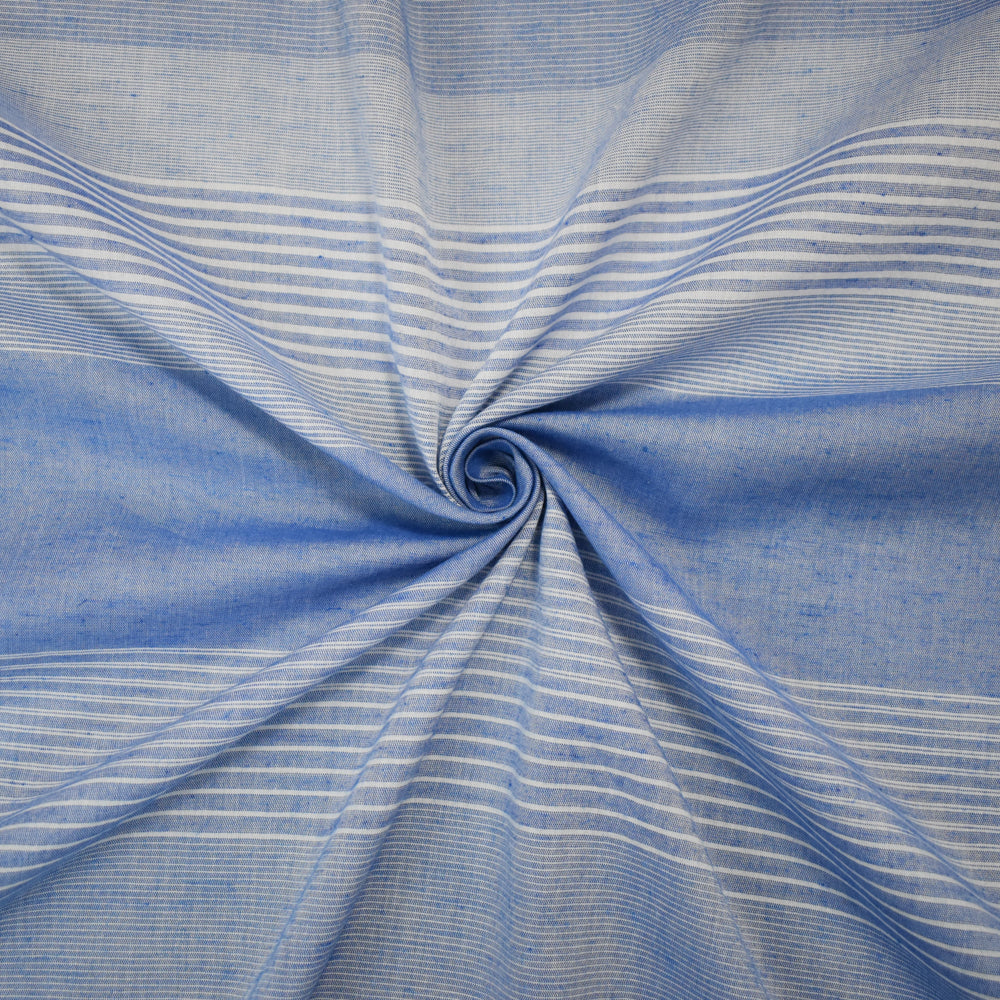 Blue-White Cotton Famous Maker Horizontal Stripe Shirting Woven Fabric