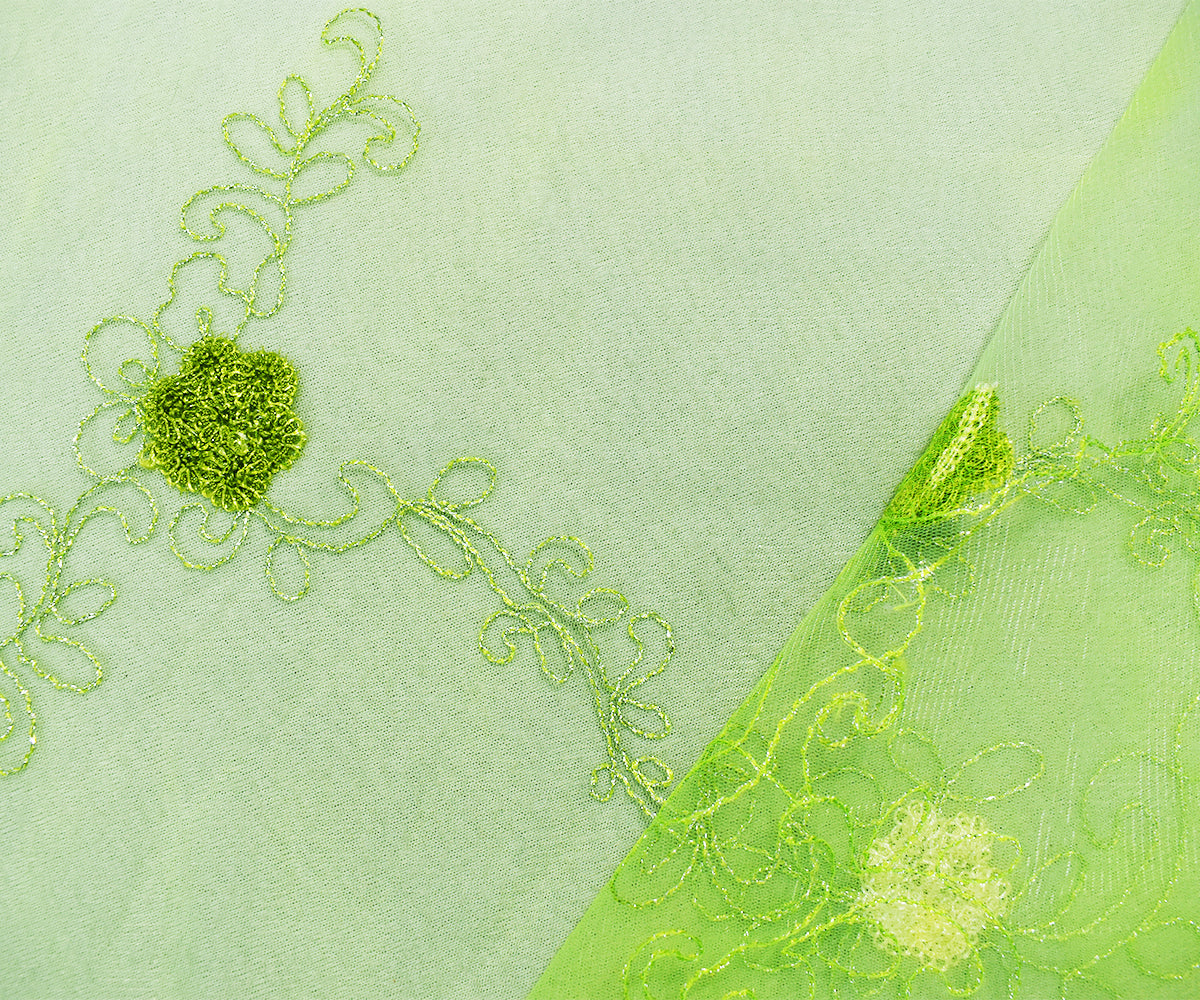 Green Nylon Embroidered Floral Sequin Scallop Tulle Mesh Fabric