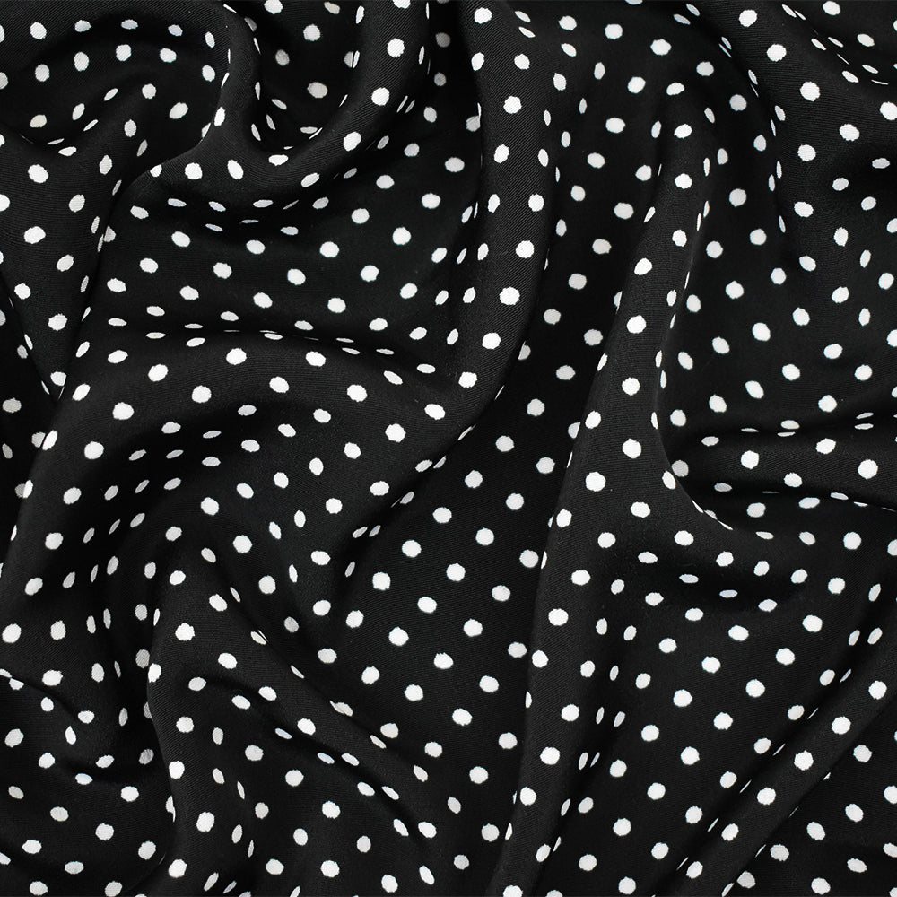 Black-White Polka Dot Printed Polyester Faille Woven Fabric